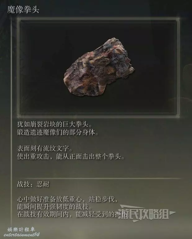 進入泰烏爾鍛造遺跡,刷遺跡裡的大個子怪物,概率掉落【武器】魔像拳頭。