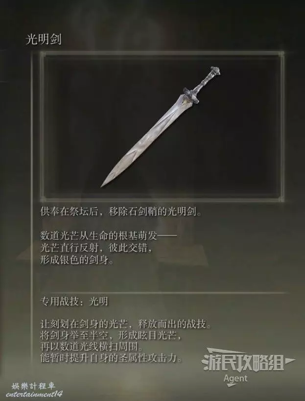到塔上看到光明祭壇,可以把石鞘劍轉化成【武器】光明劍。