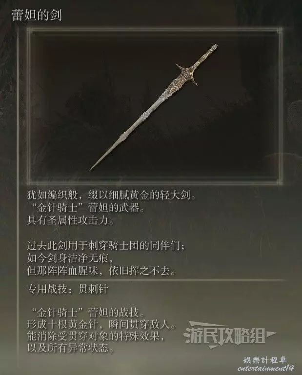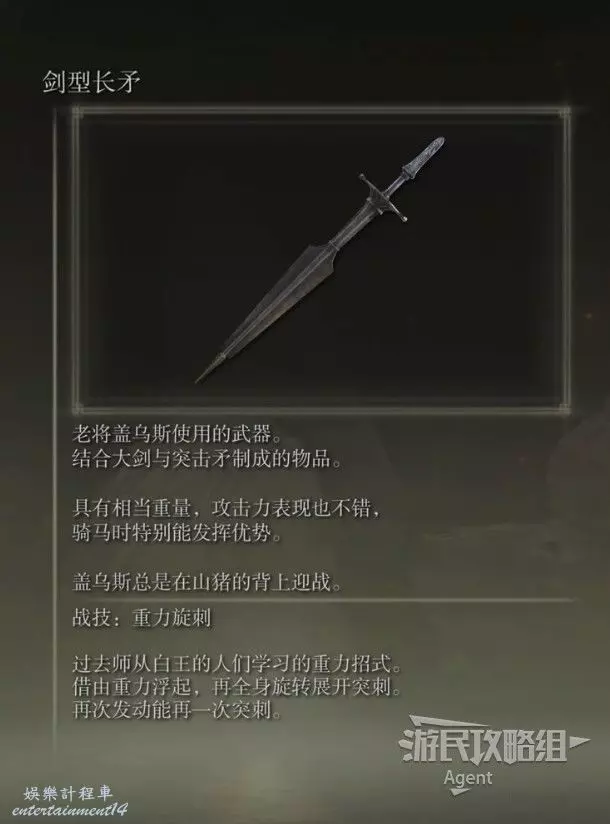 到大賜福找“解指”恩雅,用山豬騎士的追憶可兌換【武器】劍型長矛、【魔法】岩塊刀刃。