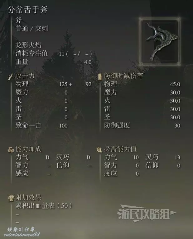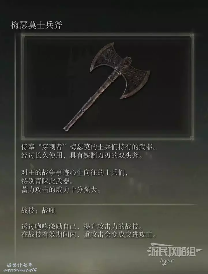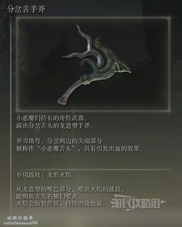 在霧谷地下墓地裡,乘電梯到下一層,刷這裡的小怪概率掉落【武器】分岔舌手斧。