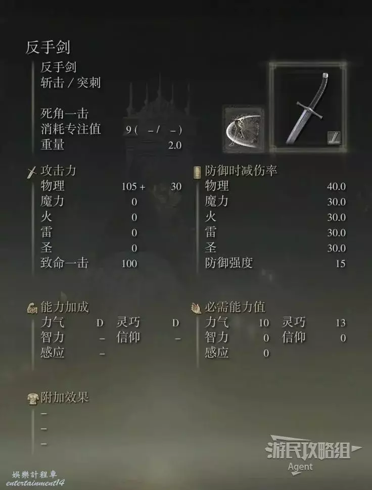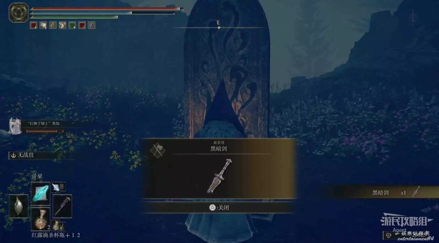 在墓地平原下圖位置的棺材旁,撿到【武器】反手劍。