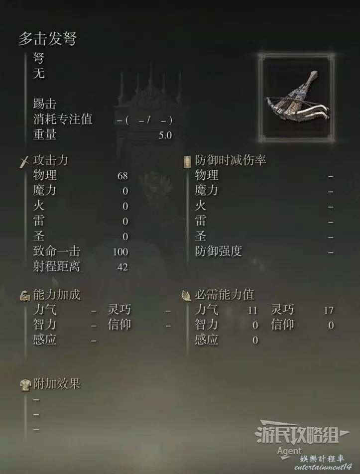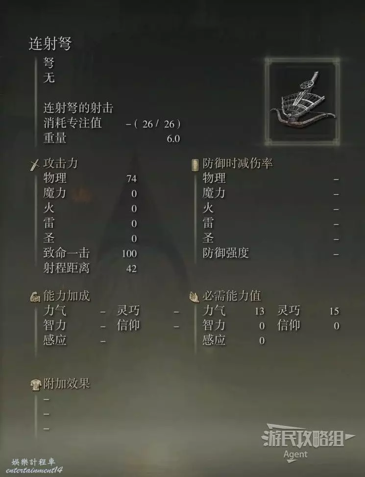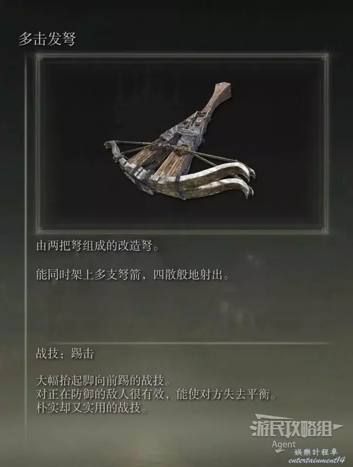走過艾拉克大橋後,到下圖位置撿到【武器】多擊發弩。