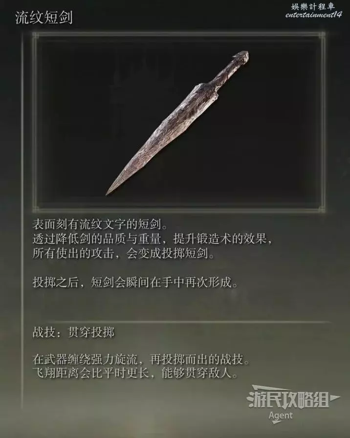 扳動機關降下大鐵棍後,跳下去撿到【武器】流紋短劍。