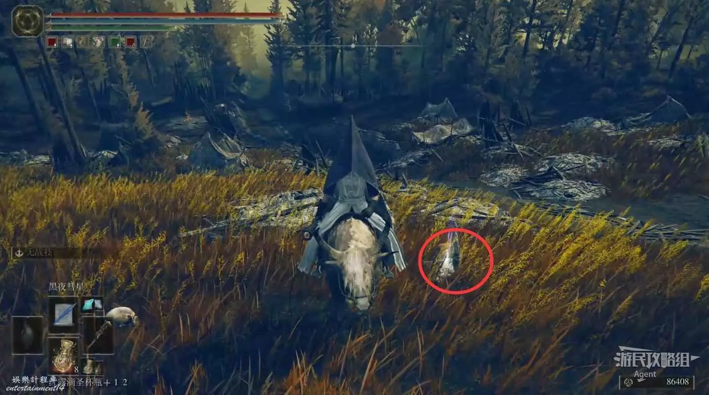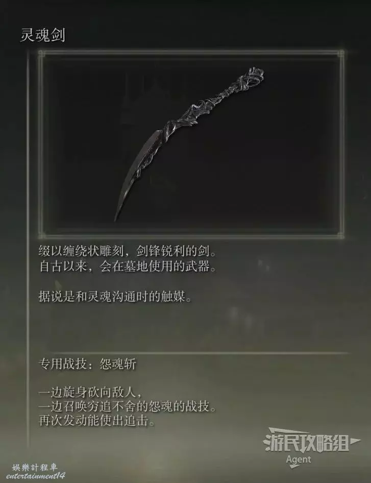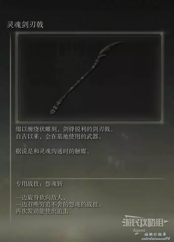 穿過龍洞來到南方海岸後,到下圖位置(墓地平原下方)撿到【武器】靈魂劍刃戟。