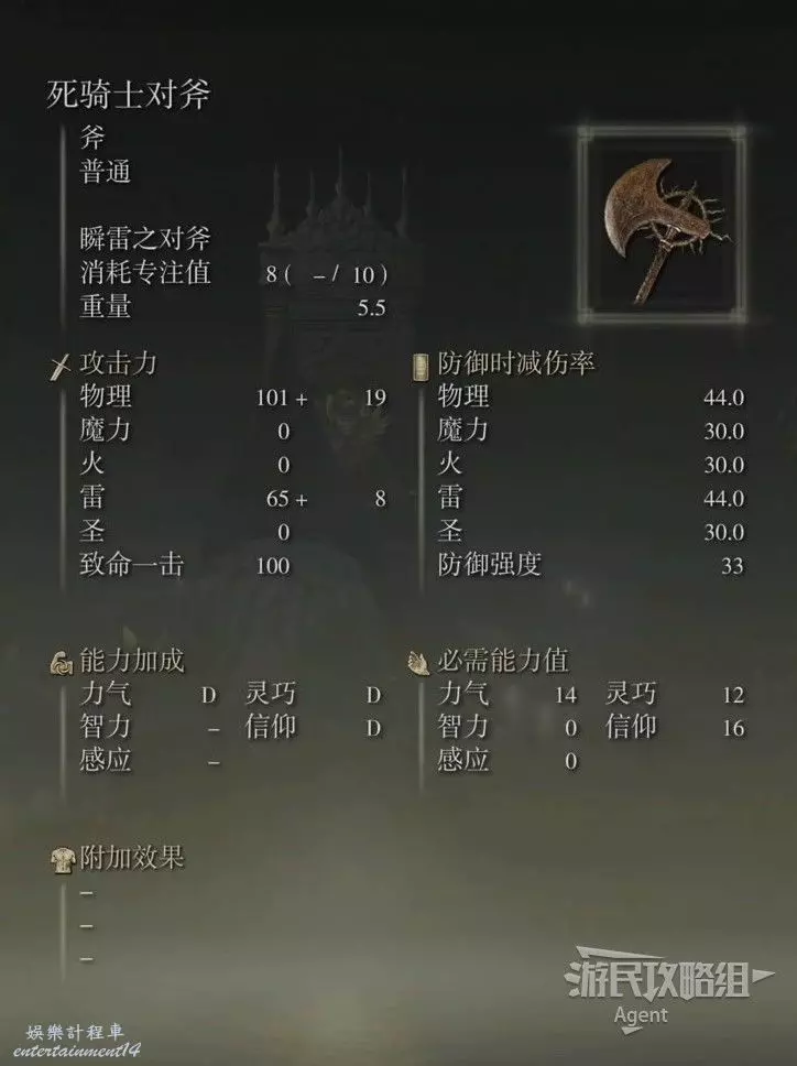 進入霧谷地下墓地,到墓地的盡頭擊敗死騎士得到【武器】死騎士對斧、【護符】紅琥珀鏈墜+3。