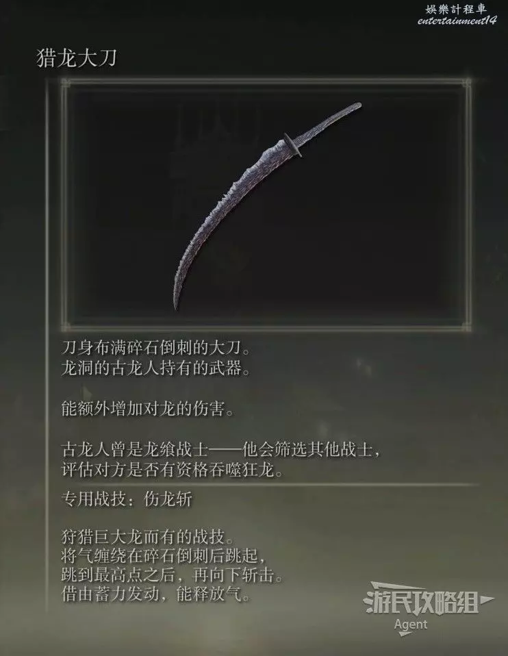 進入龍洞,到最深處跳下深坑後,擊敗古龍人得到【武器】獵龍大刀。