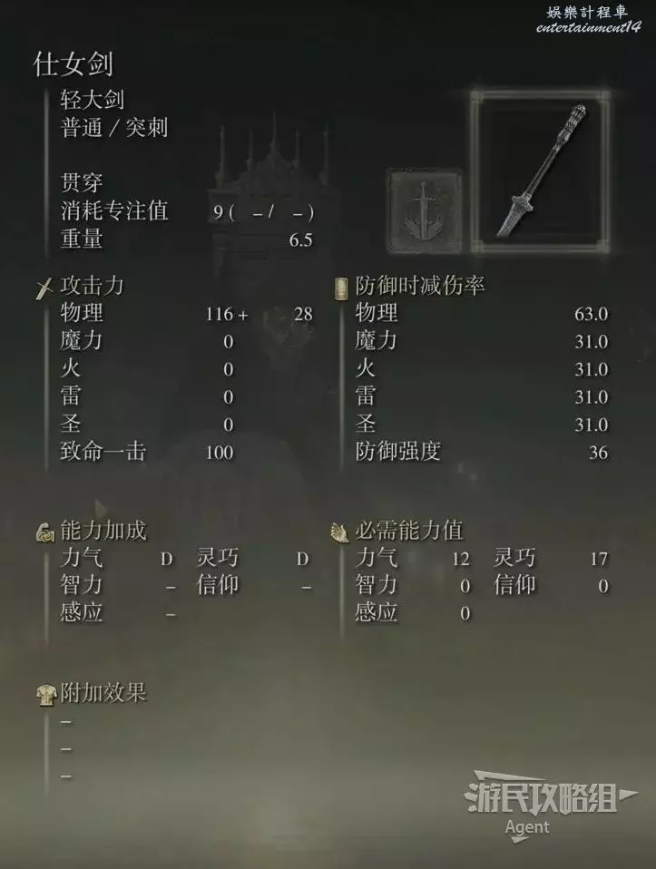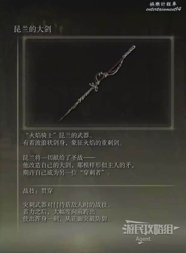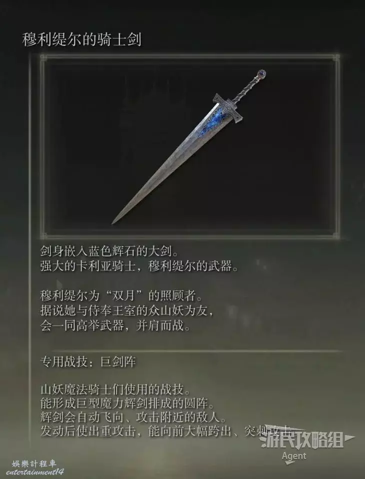 恩希斯城的主城門口有“卡利亞騎士”穆利緹爾守著,擊敗他得到【武器】穆利緹爾的騎士劍。