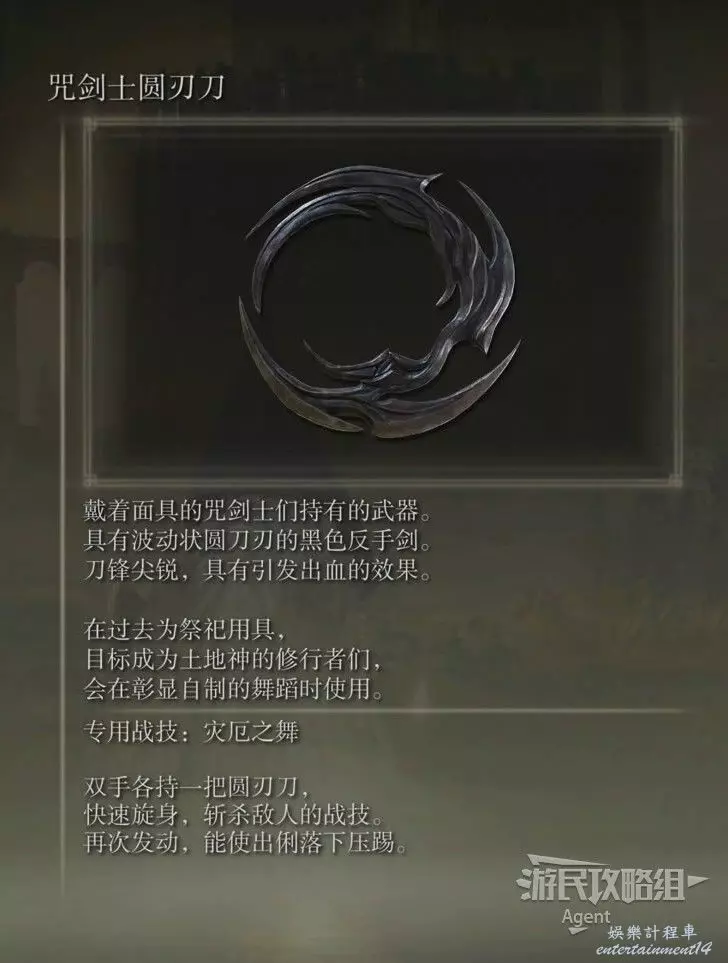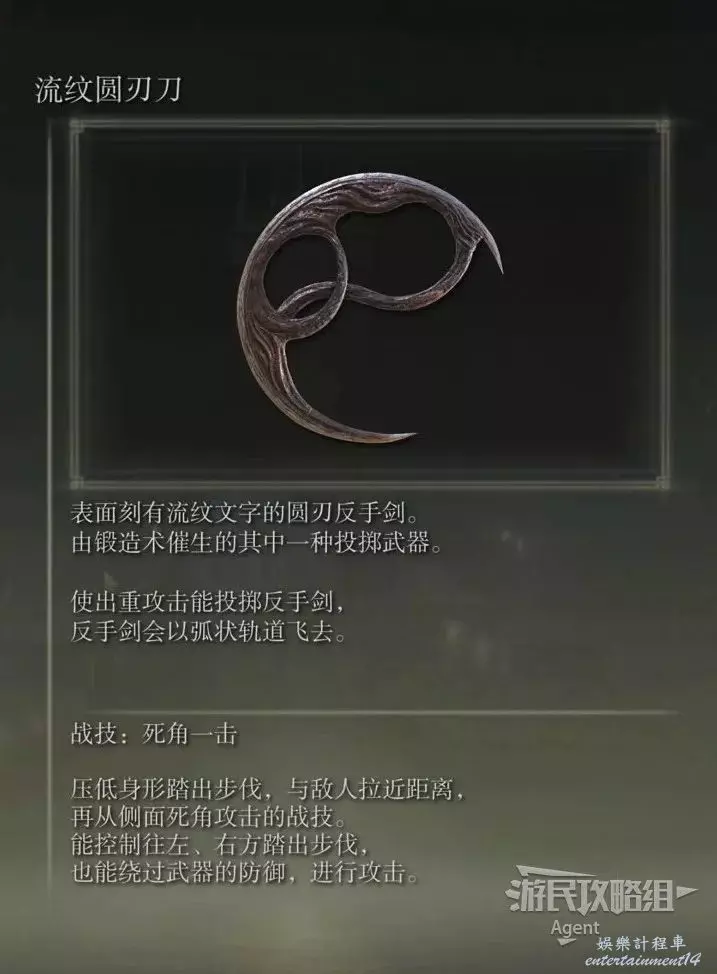 扳動第二個機關打開第二道門後,進來撿到【武器】流紋圓刃刀。