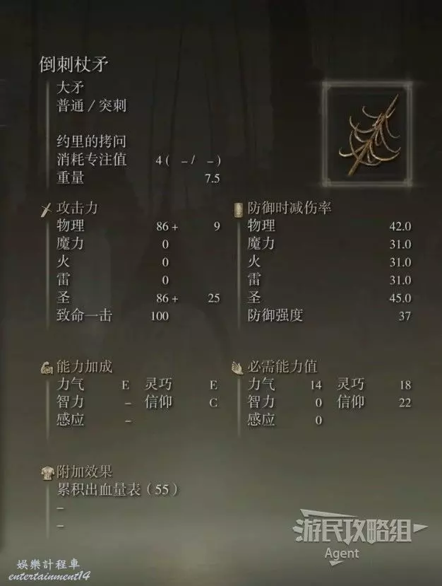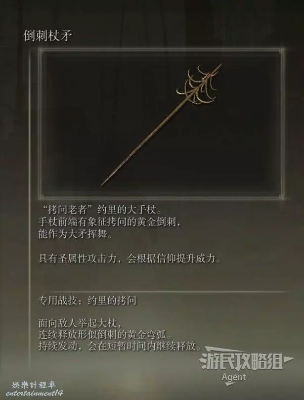 到驅暗地下墓地深處打BOSS,擊敗“拷問老者”約裡得到【武器】倒刺杖矛。