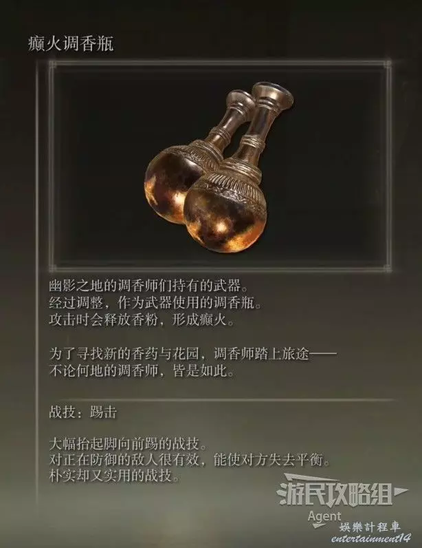 廢棄教堂角落裡撿到【武器】癲火調香瓶。