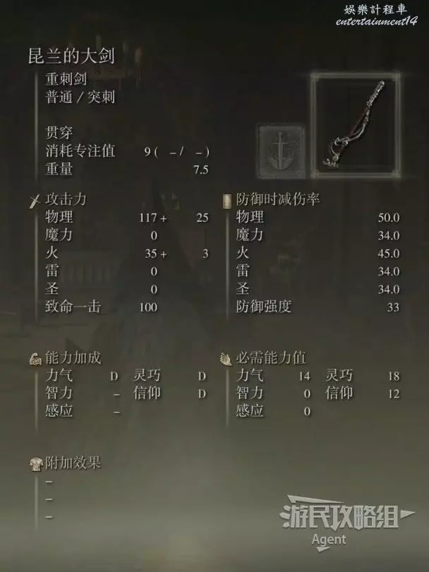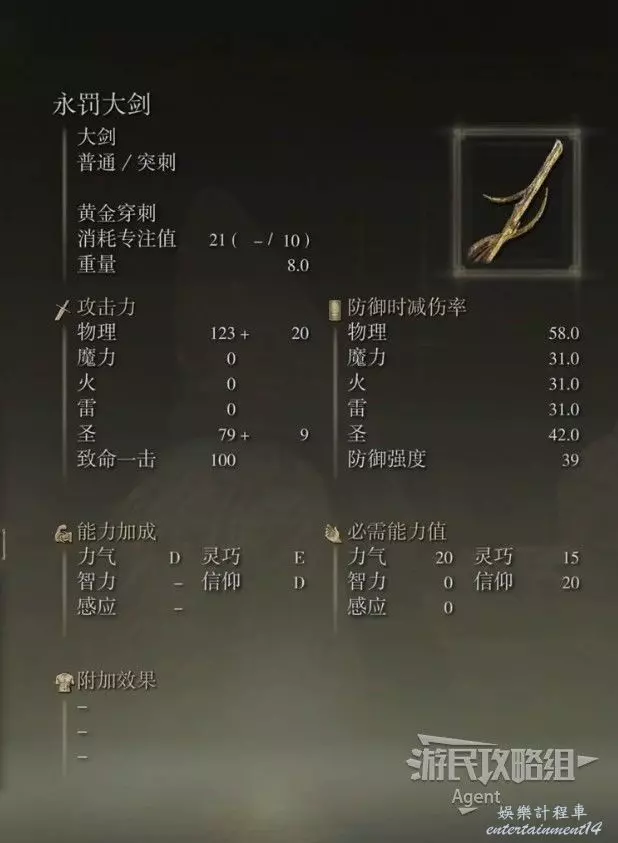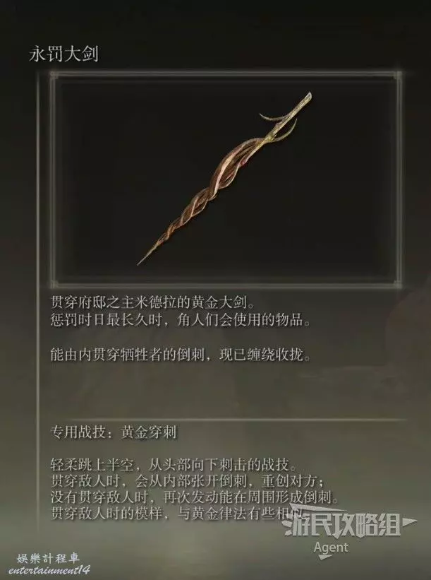 到大賜福找“解指”恩雅,用癲火之王的追憶可兌換【武器】永罰大劍、【禱告】米德拉的癲火。
