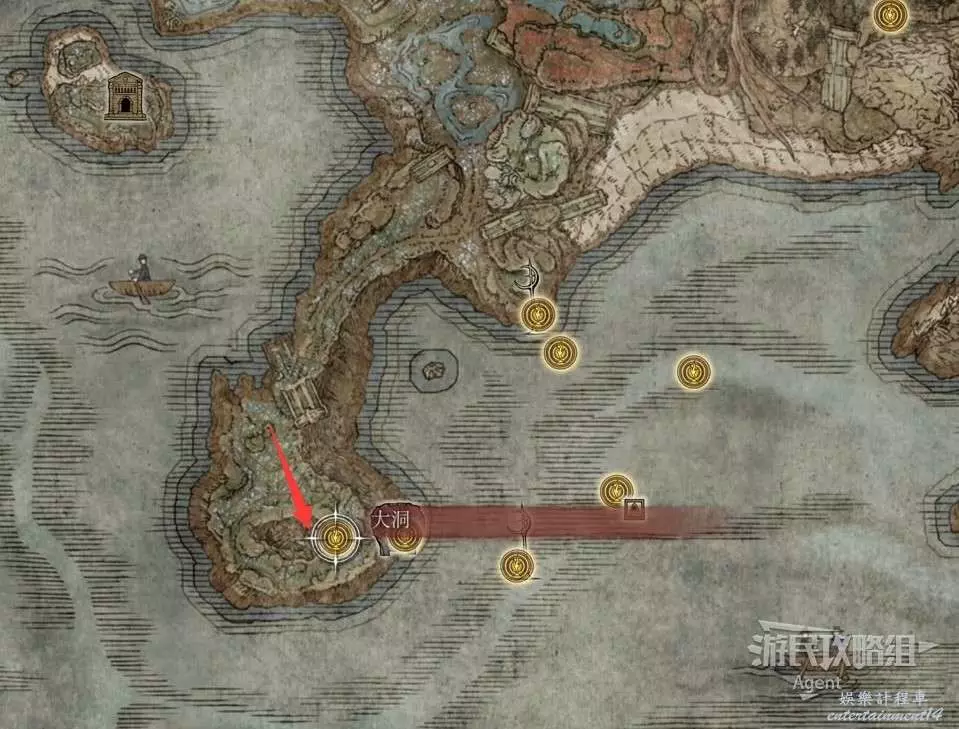 到下圖大圈位置的海岸邊,擊敗“亞人女王”瑪麗戈得到【武器】連星劍。