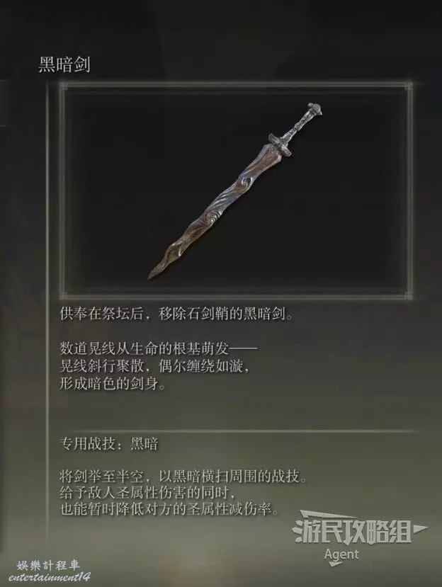 旁邊是黑暗祭壇,可以把之前在霧谷地下墓地拿到的石鞘劍,變成【武器】黑暗劍。