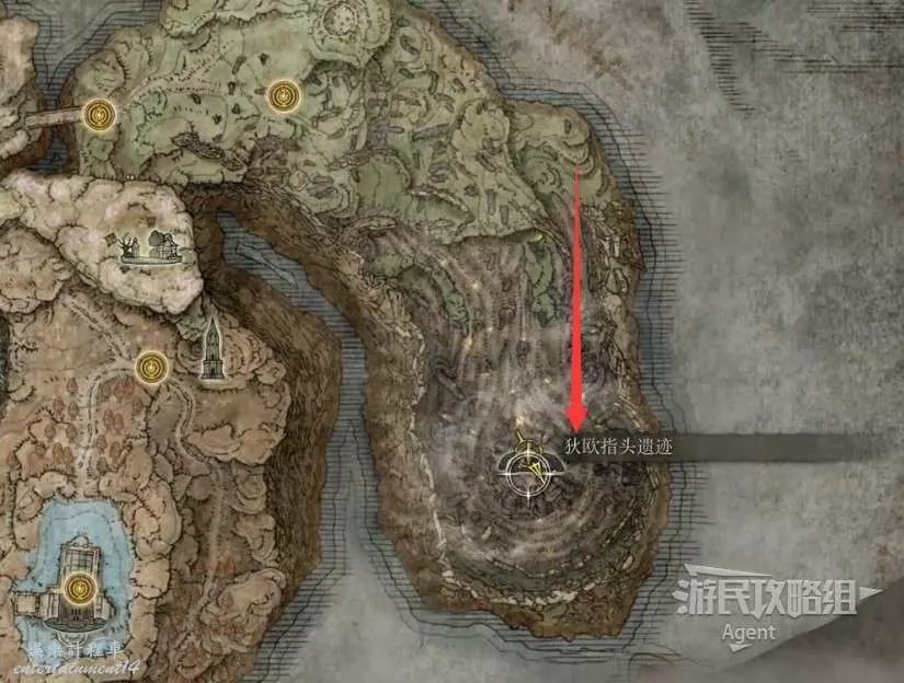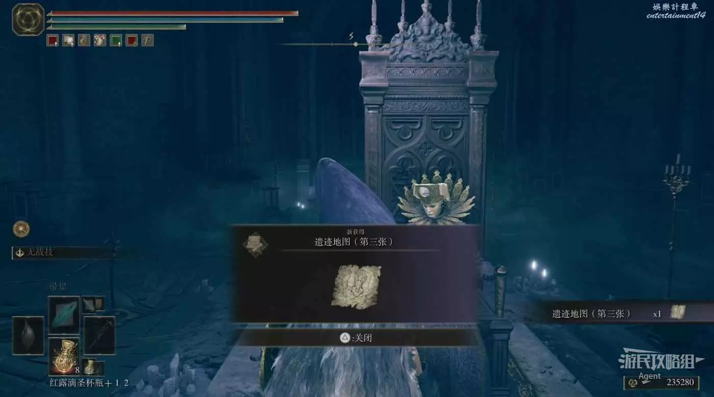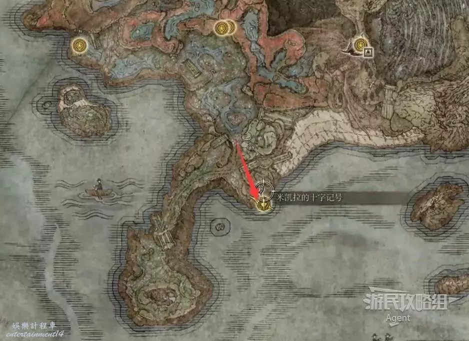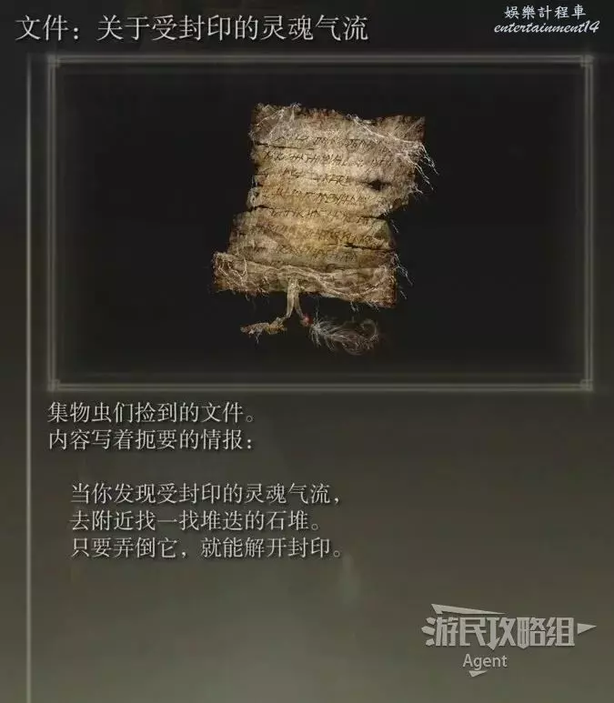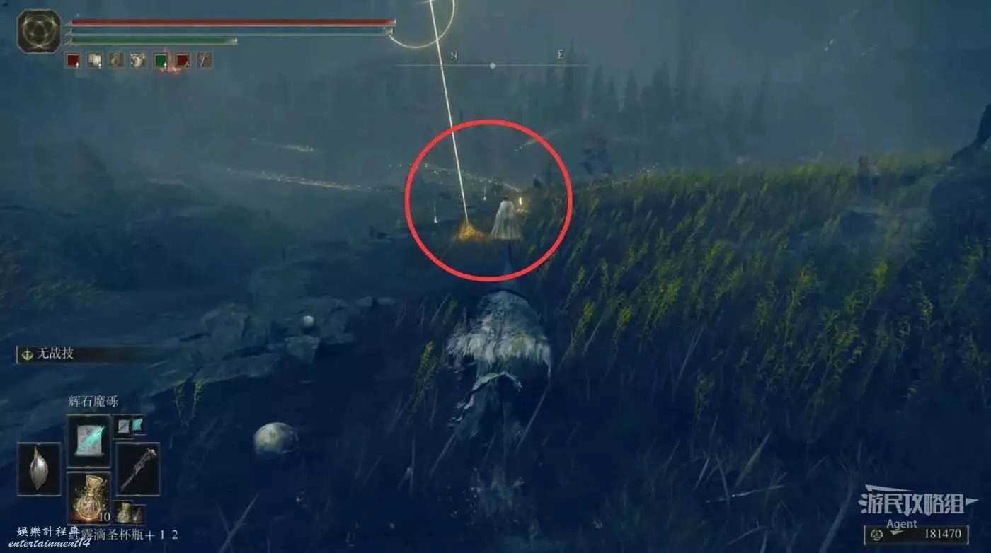 穿過迷宮出來後,來到“勞弗古遺跡(東方)”賜福點,十字記號旁撿到“古遺跡十字記號旁的信”。