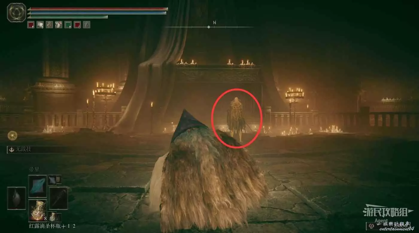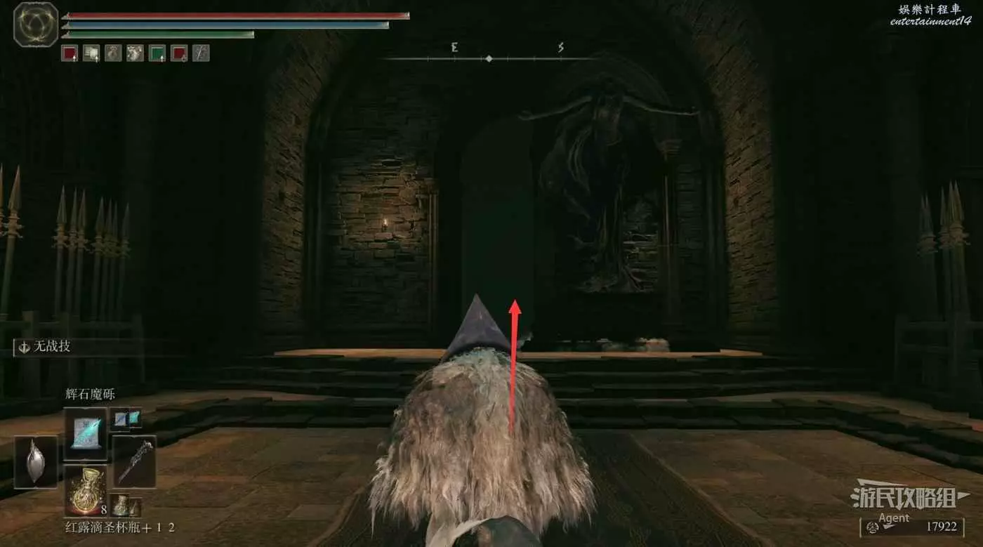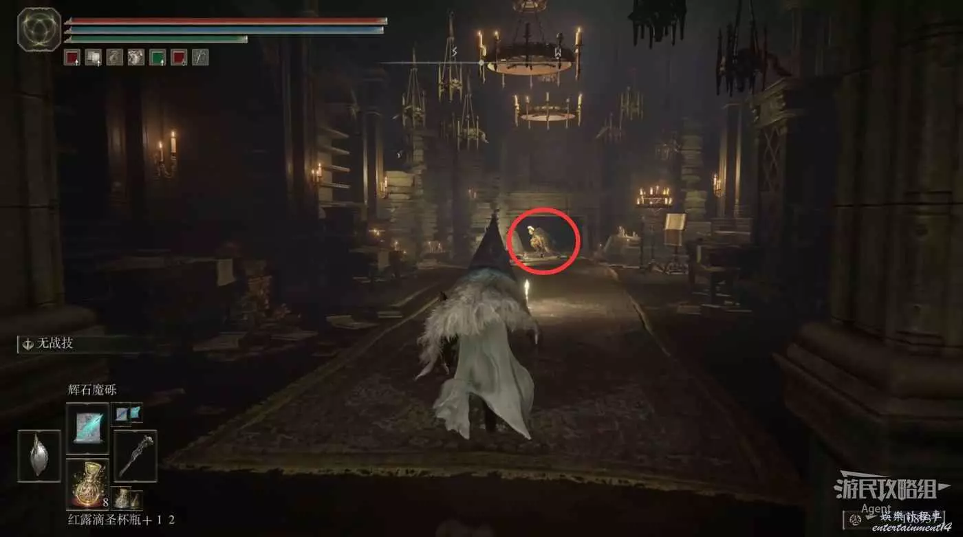 如果你之前沒有幫角人打金針騎士,那麼此時金針騎士還在“大道旁的十字記號”,和金針騎士對話,他還想要幹掉對米凱拉“不忠心”的安帕赫。決鬥觸發地就在下圖位置,之前安帕赫所在的房間。建議幫安帕赫,這樣他會幫你打最終BOSS。