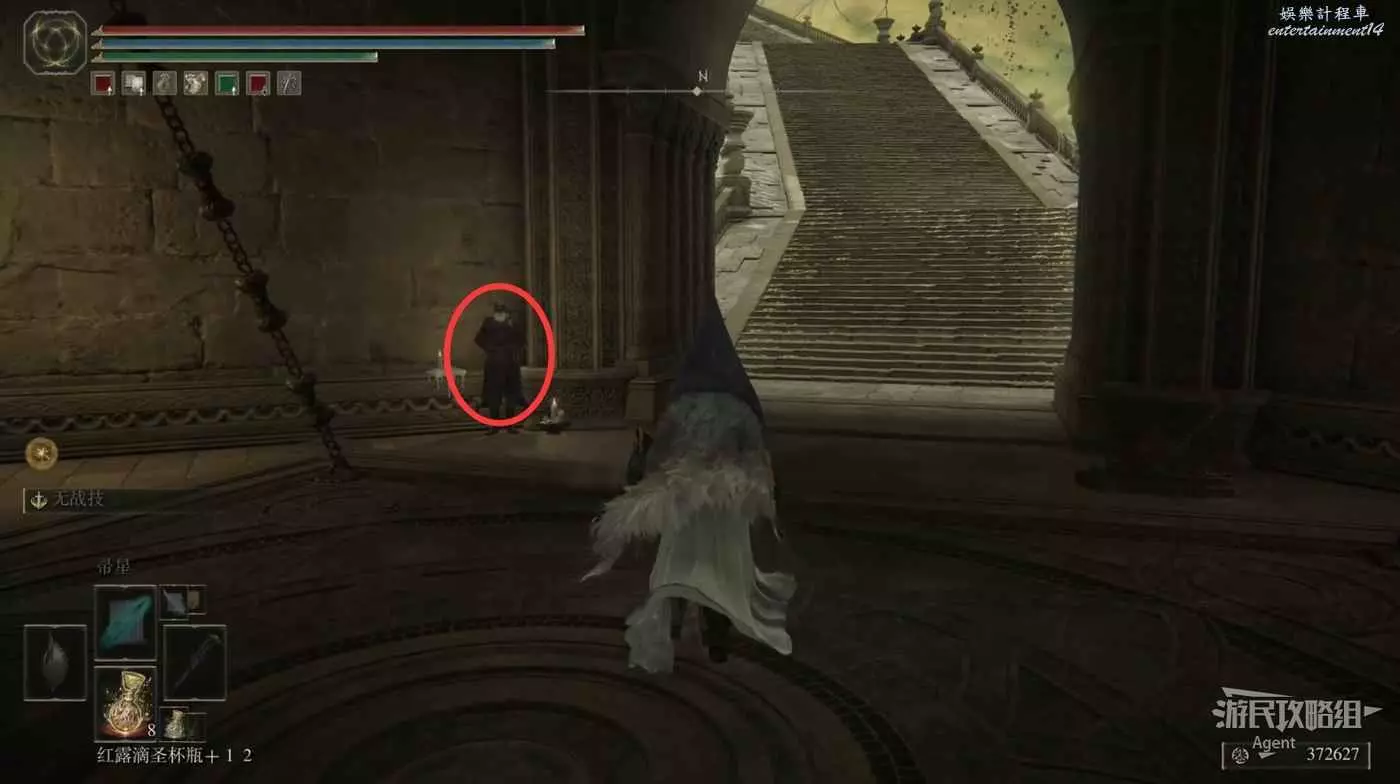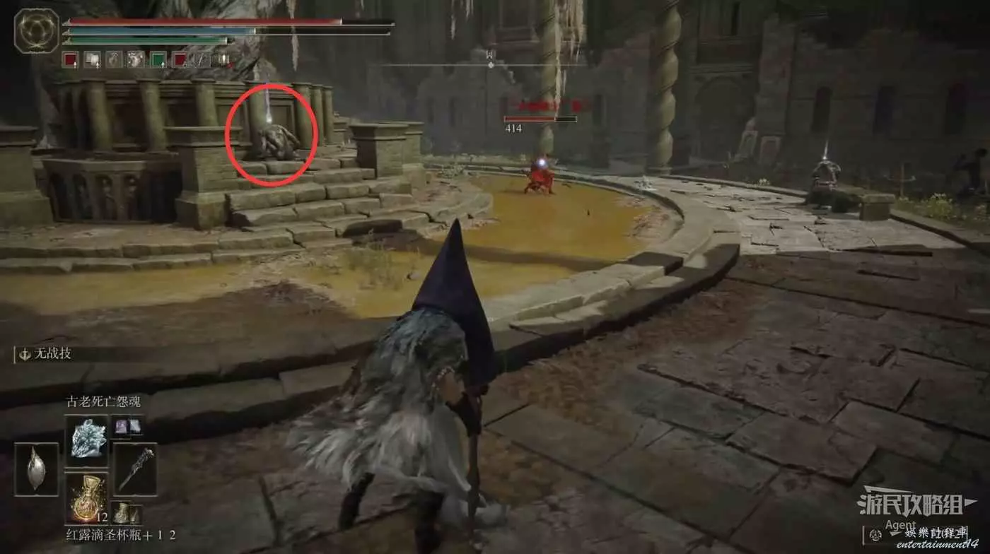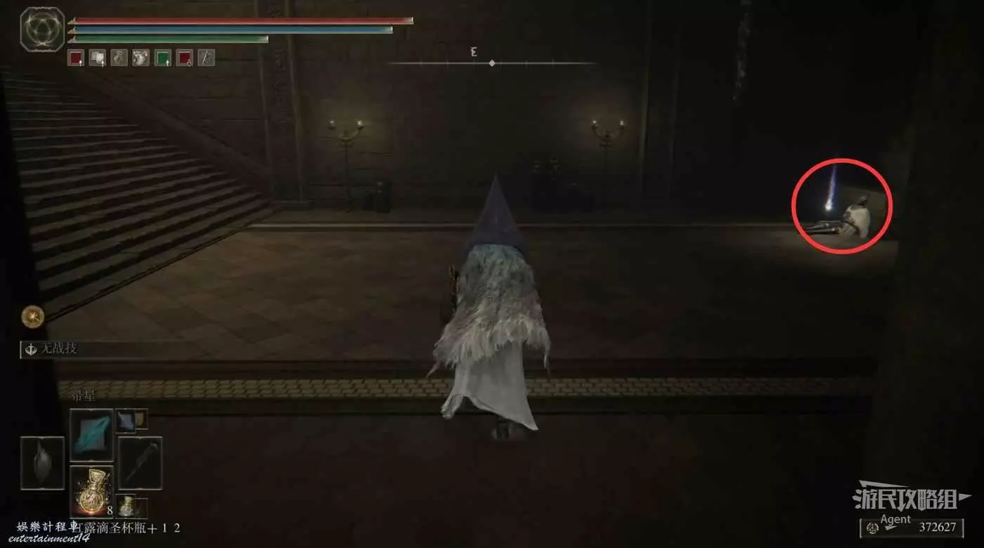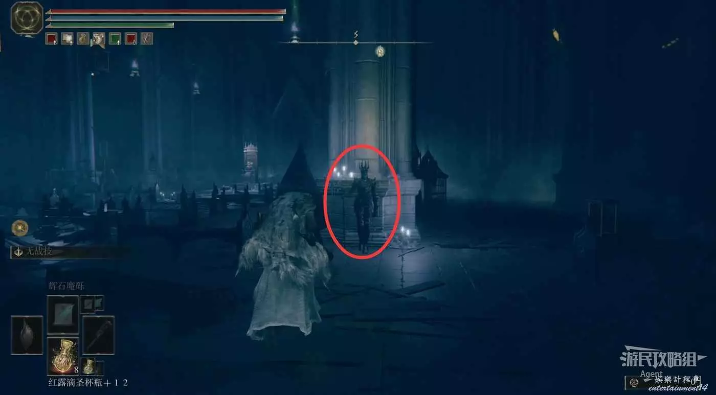 如果你之前沒有幫角人打金針騎士,那麼此時金針騎士還在“大道旁的十字記號”,和金針騎士對話,他還想要幹掉對米凱拉“不忠心”的安帕赫。決鬥觸發地就在下圖位置,之前安帕赫所在的房間。建議幫安帕赫,這樣他會幫你打最終BOSS。