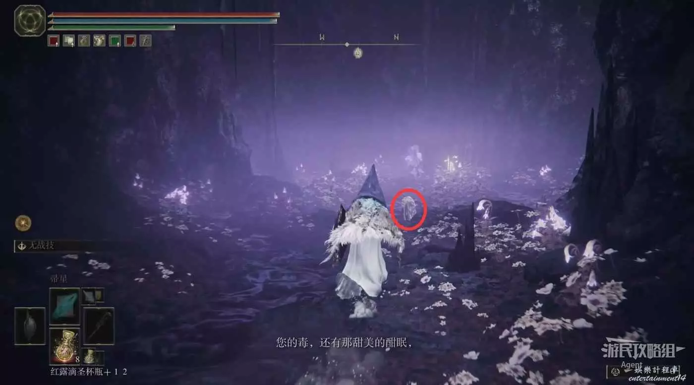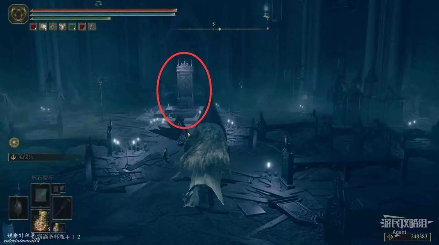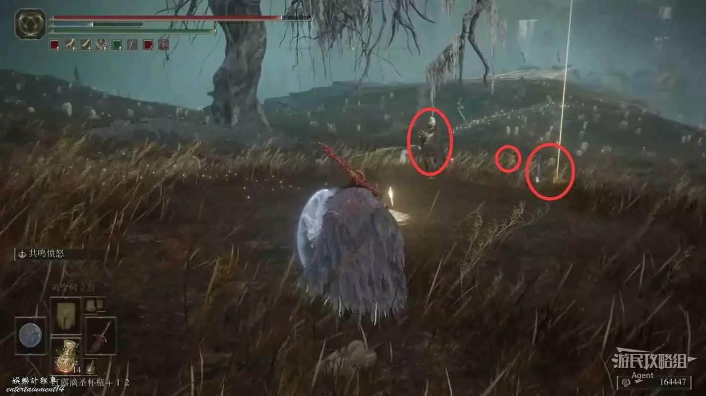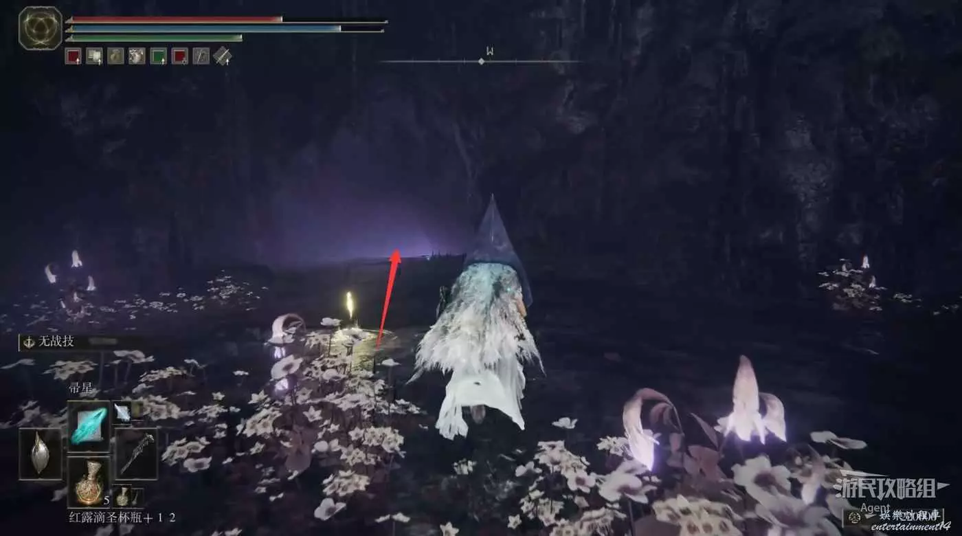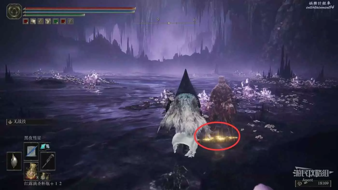 在進入DLC地圖之前,切換本體遊戲的地底地圖,傳送到蒙格溫王朝的“神人墜眠之繭”賜福點。