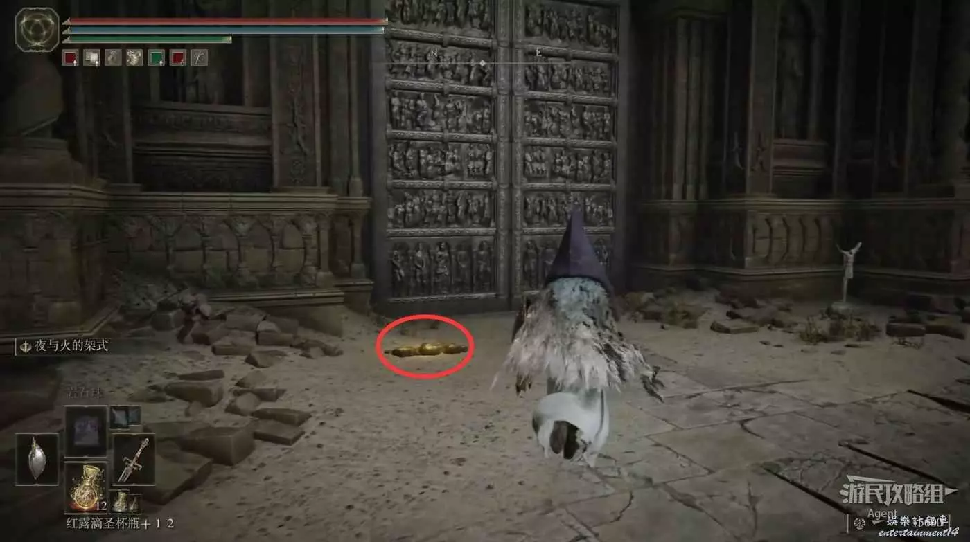 吹響圓形遺跡中間的吊鐘,得到【護符】紅種子護符+1。