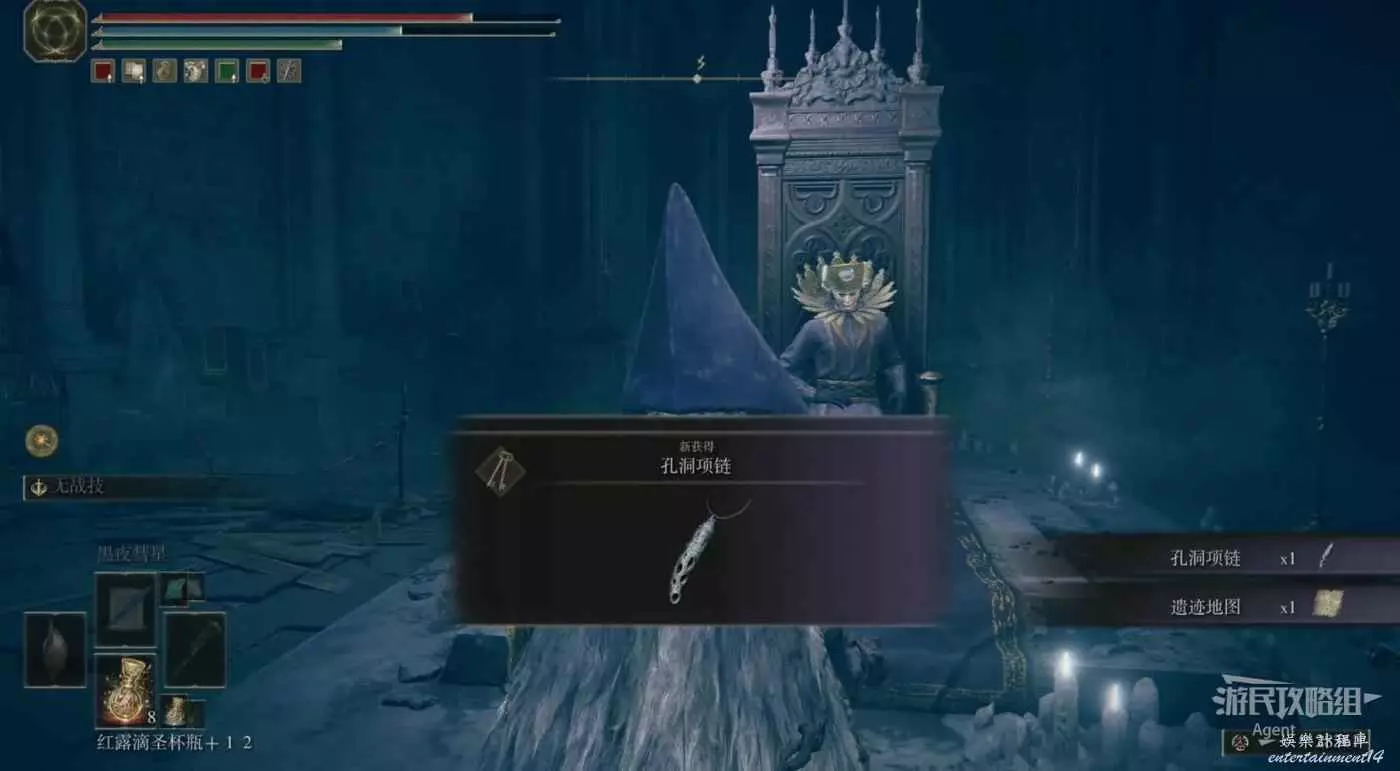 進入瑪努斯·美特大教堂,對話“大祭司”尤彌爾,他會給你孔洞項鍊、遺跡地圖,讓你去遺跡吹響吊鐘。