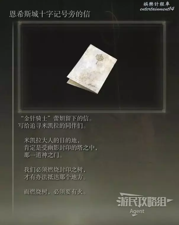 在恩希斯城的關卡城門外,十字記號旁撿到“恩希斯城十字記號旁的信”。