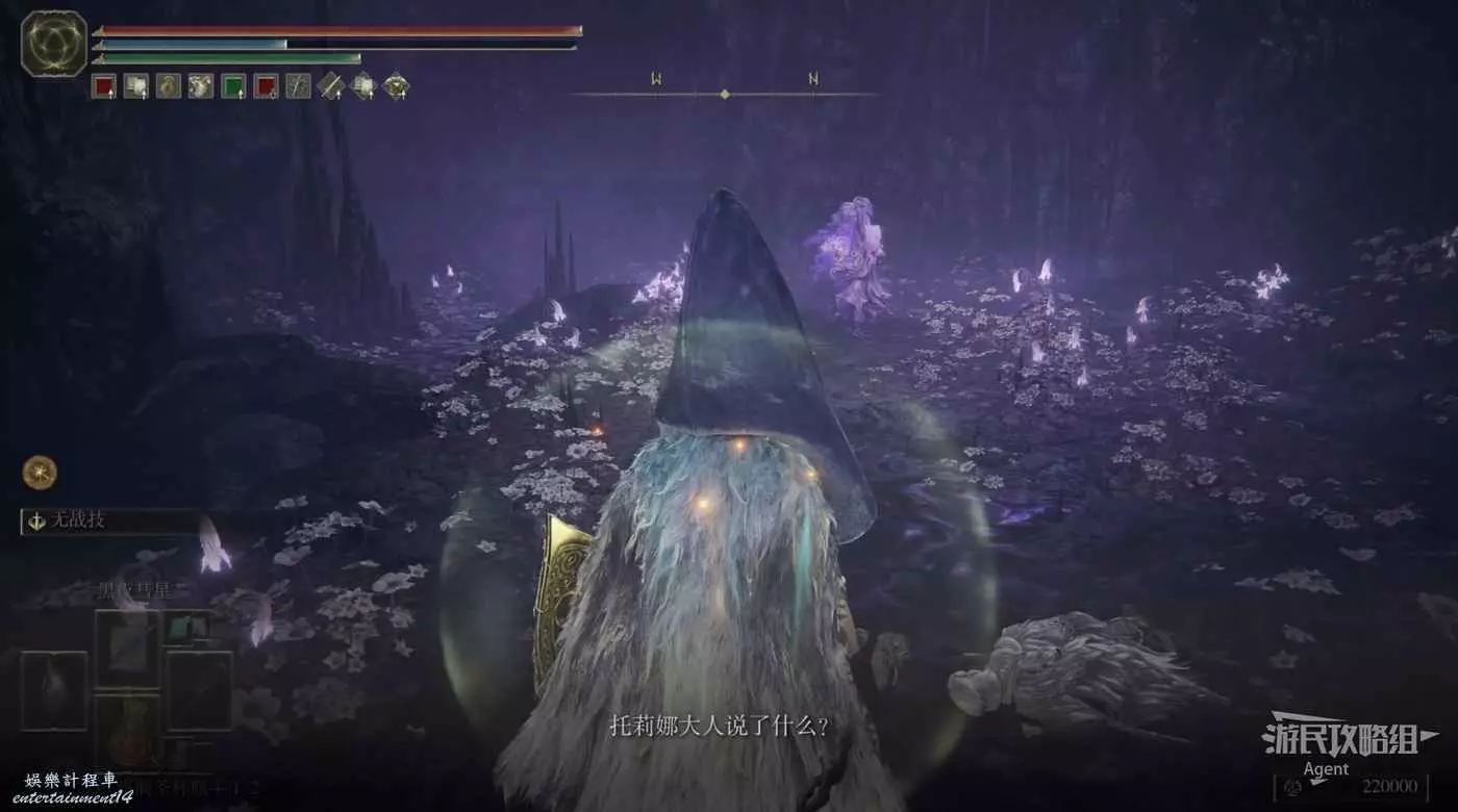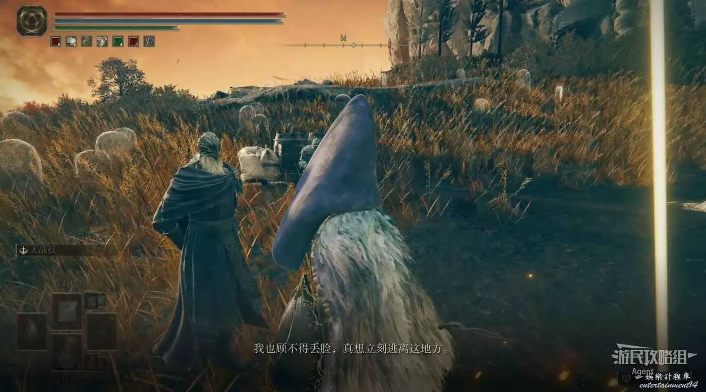 遇到剛才幫你打雙月騎士的“金針騎士”蕾妲,她會跟你聊角人的事。