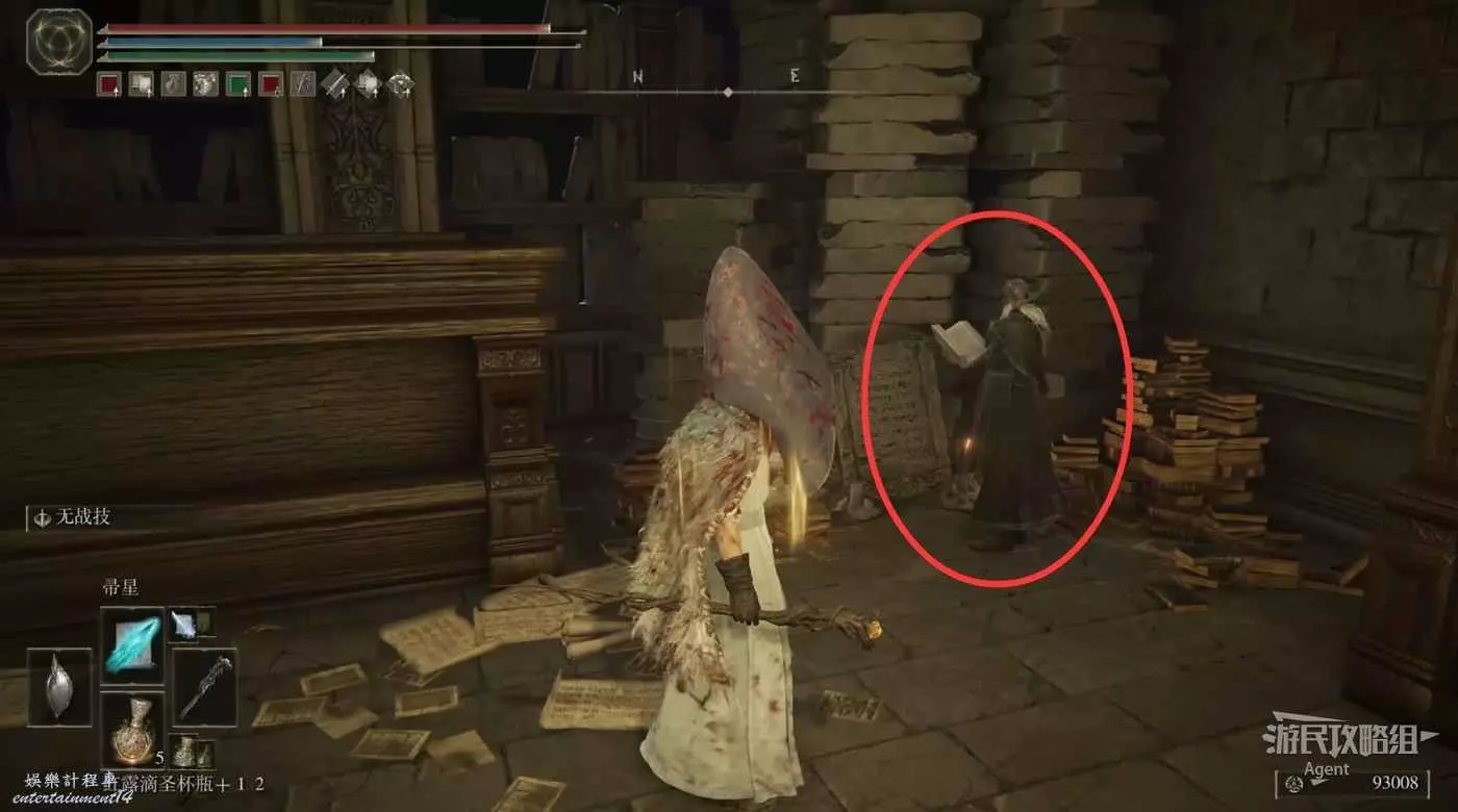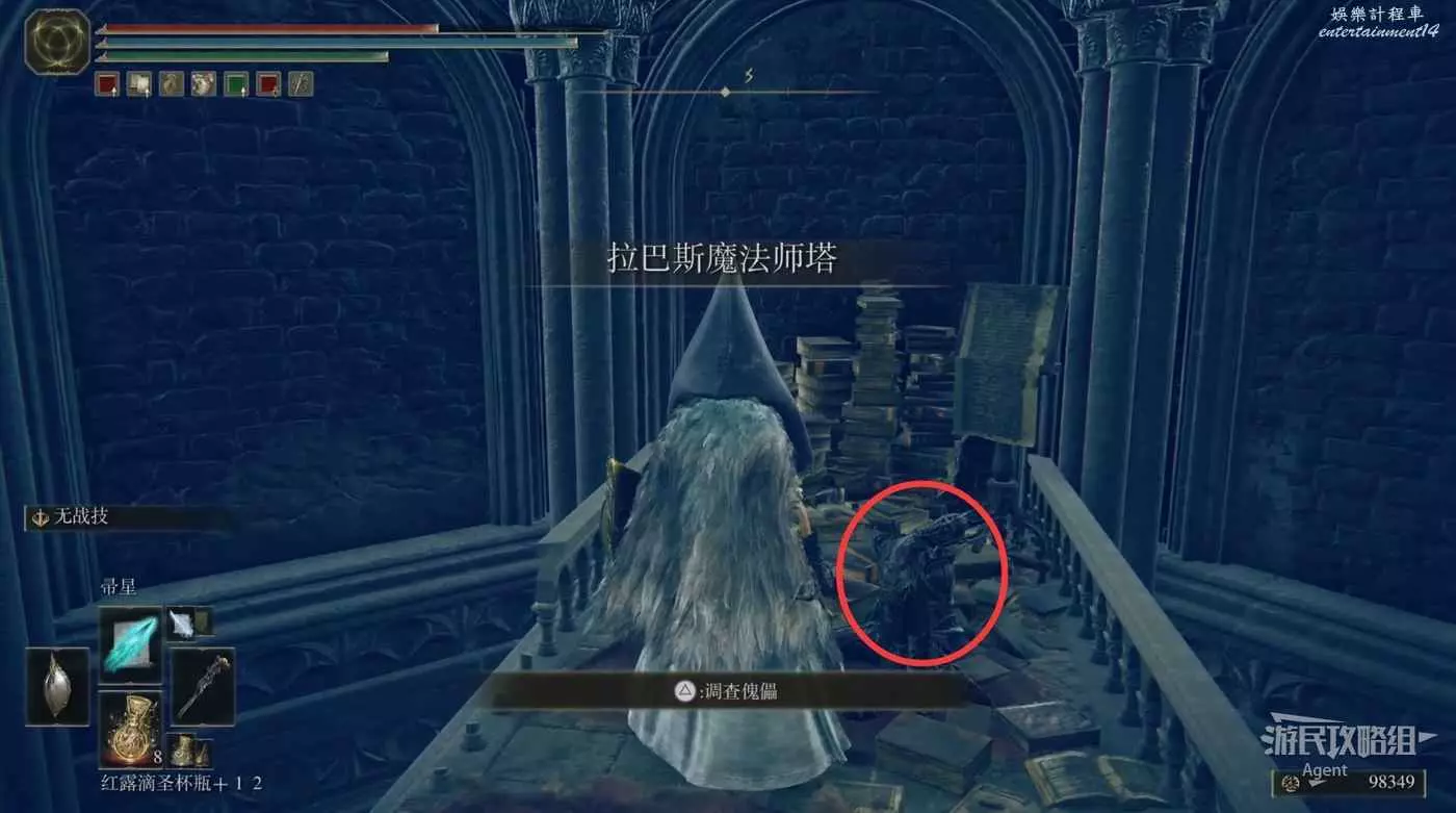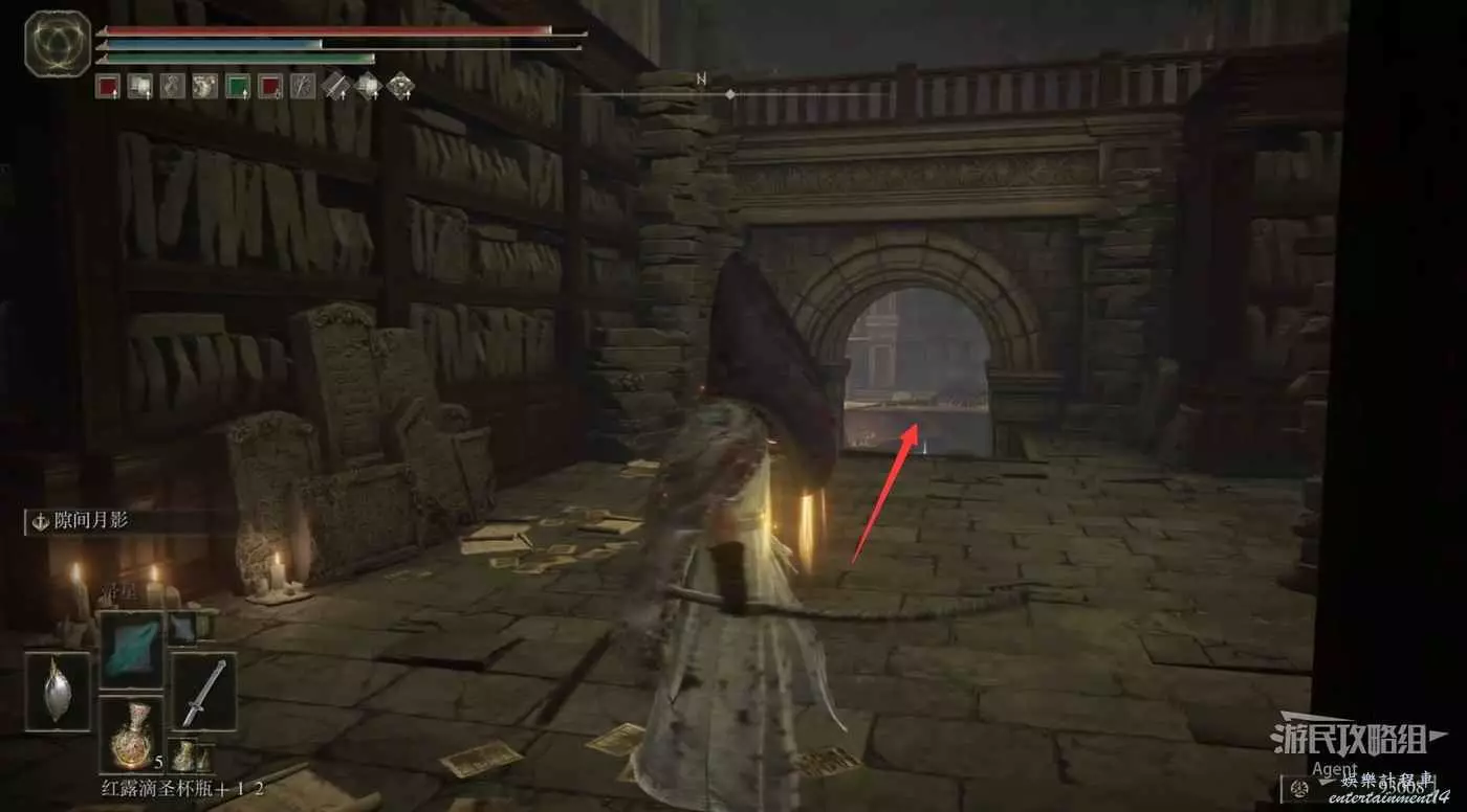 從四樓出來走上樓梯,到下圖位置時,左邊有個向下的樓梯,下去撿到“秘密儀式卷軸”。