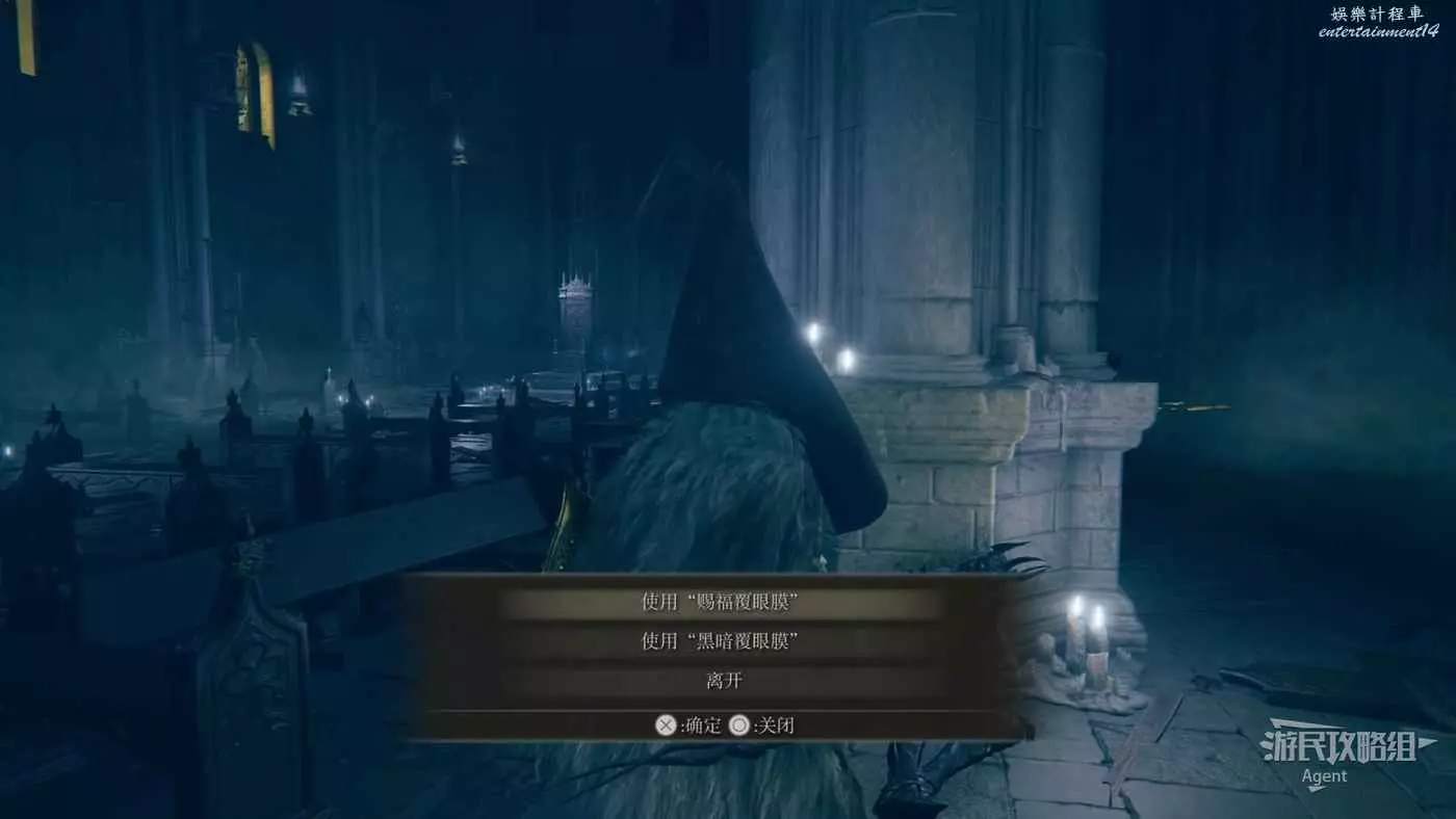 坐篝火刷新後再來找約蘭,給她賜福覆眼膜或黑暗覆眼膜。黑暗覆眼膜位置、賜福覆眼膜位置