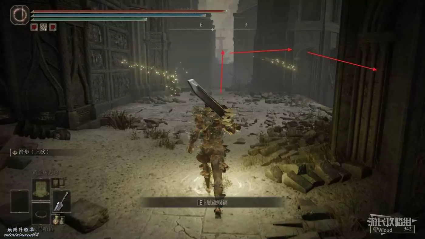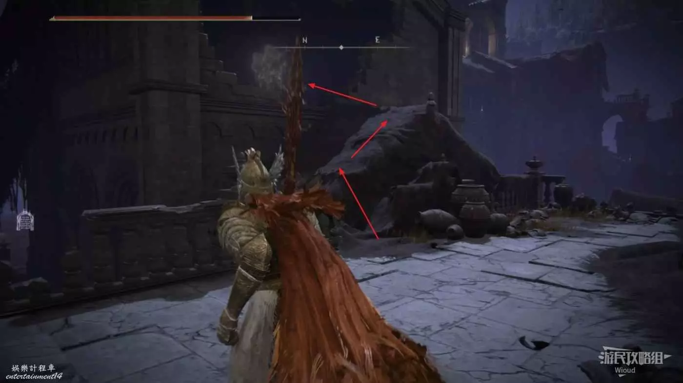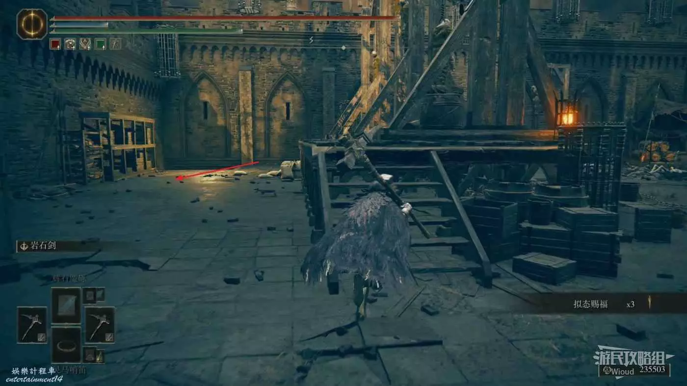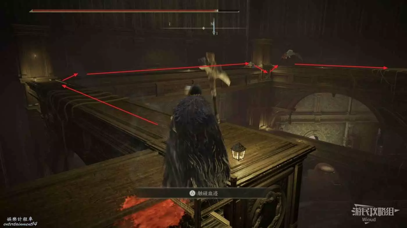 首先從賜福【民宅小祭壇】出發,先爬上左邊樓梯,然後靠著右牆走到盡頭左轉進入一個小區域。