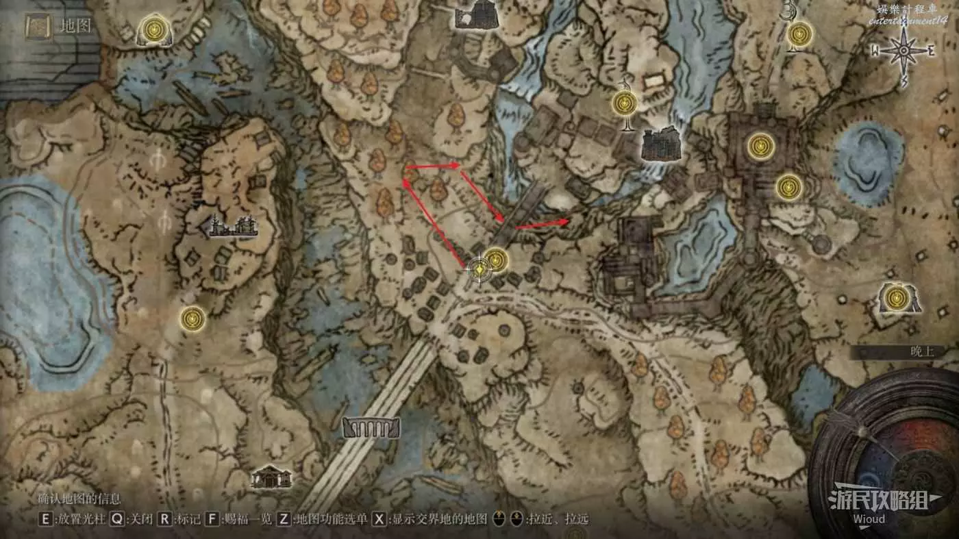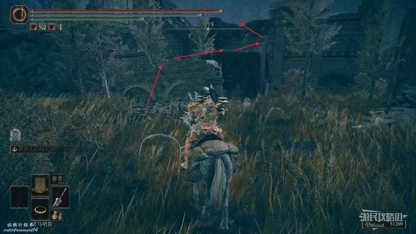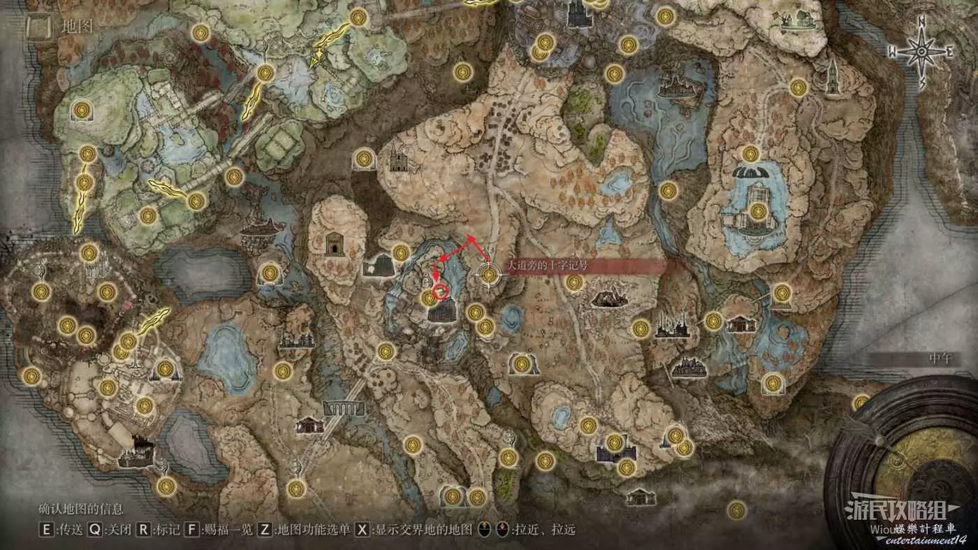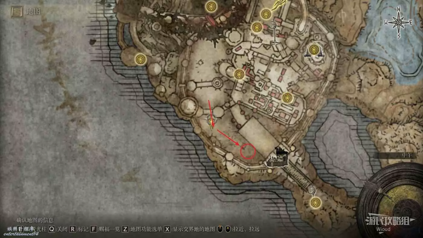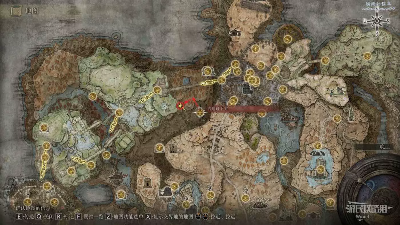 按照下圖路線從【穆斯廢墟】出發經過【古遺跡下方】賜福繼續往地圖左下走即可到達。