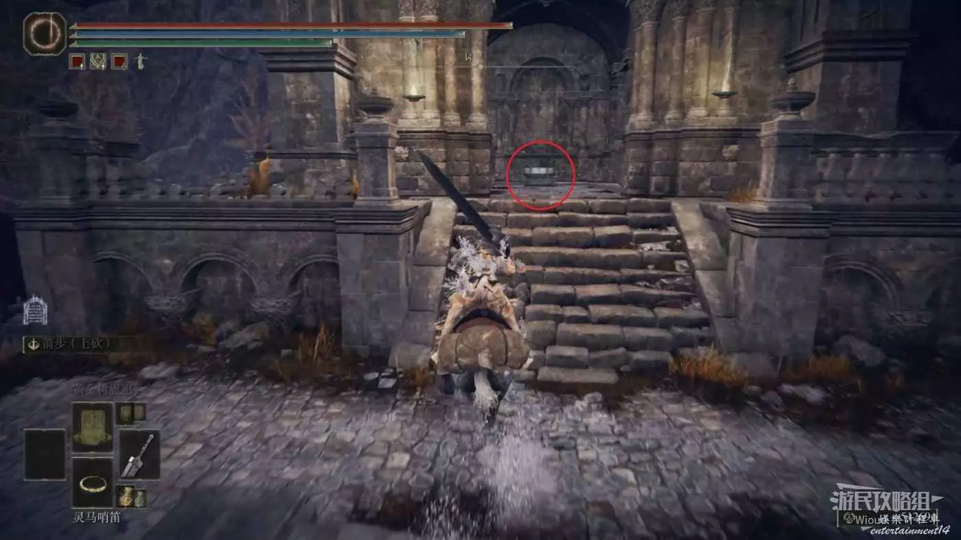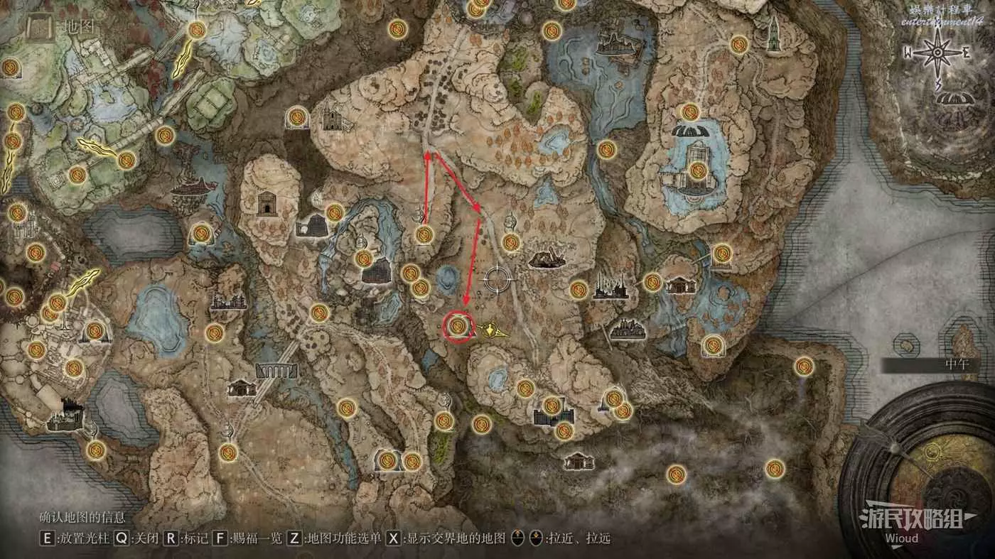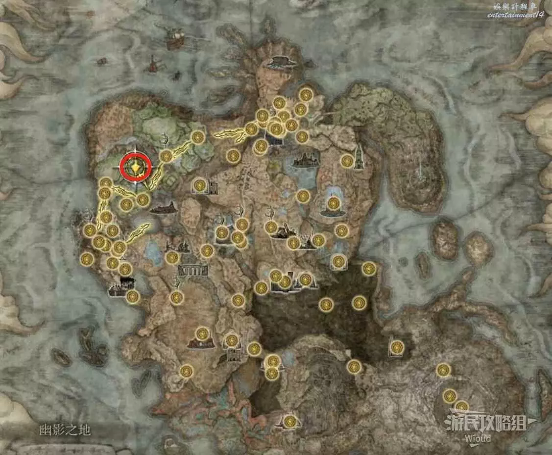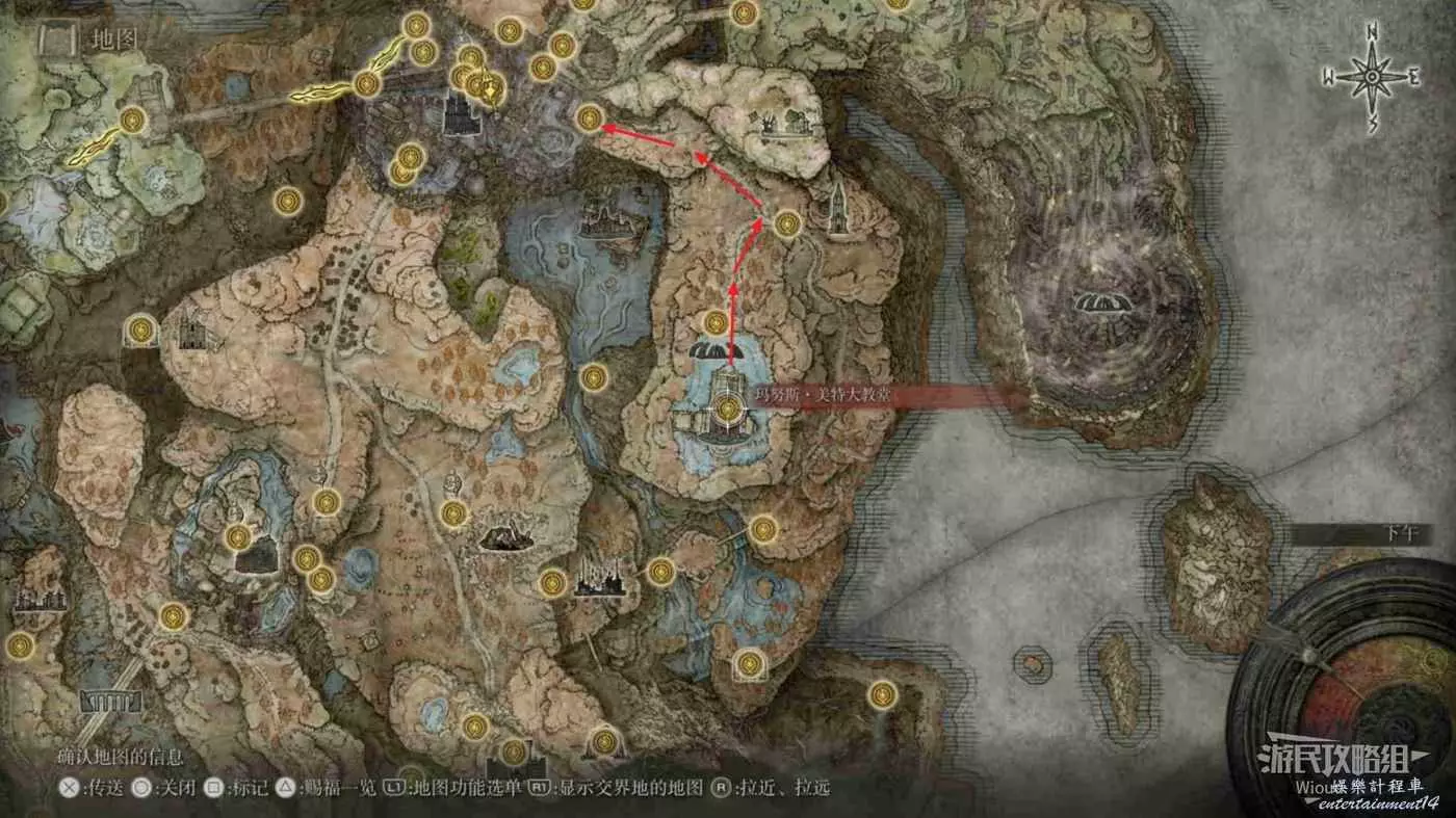 按照下圖路線從【穆斯廢墟】出發經過【古遺跡下方】賜福繼續往地圖左下走即可到達。