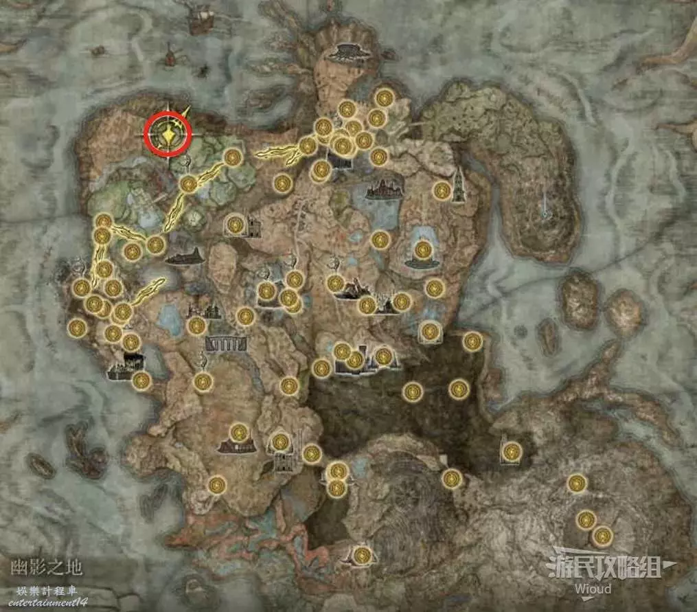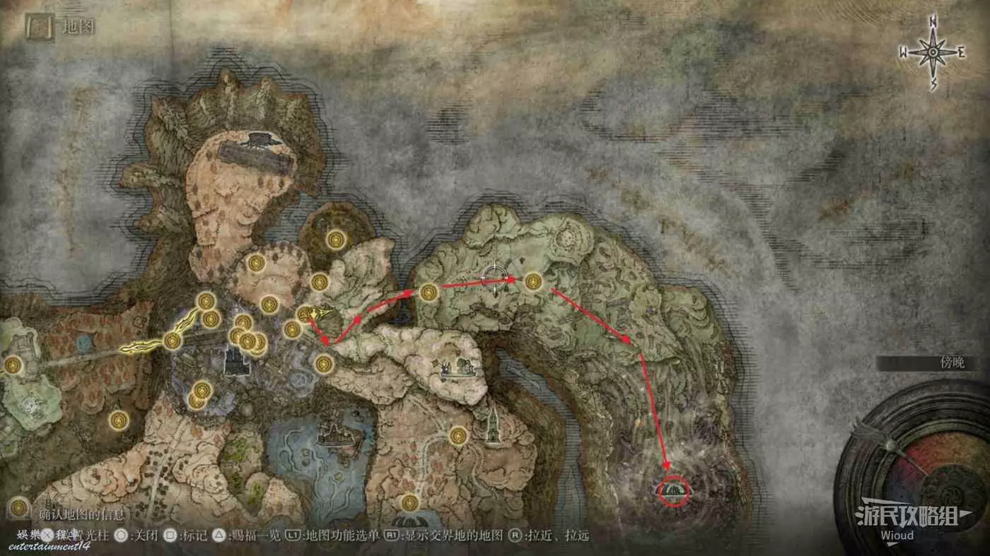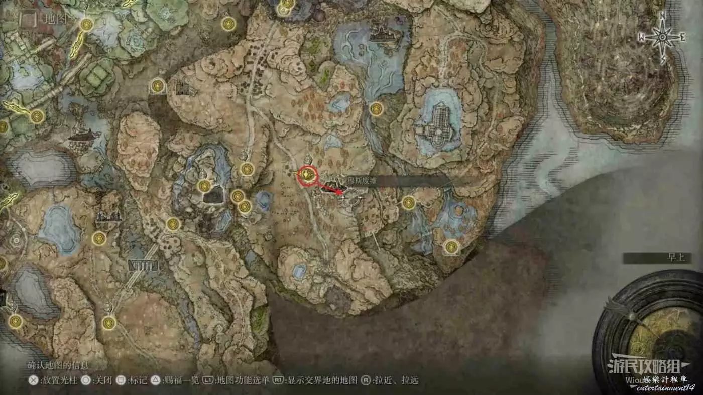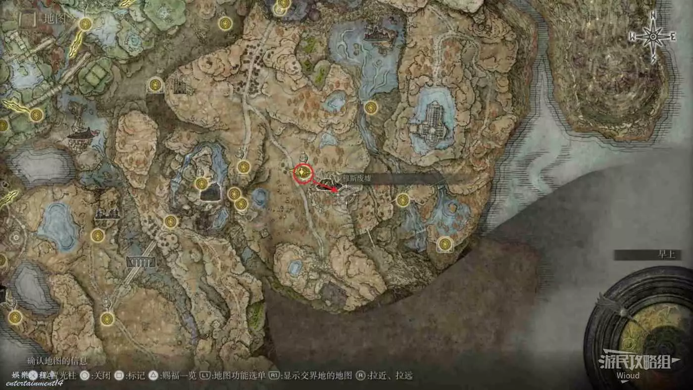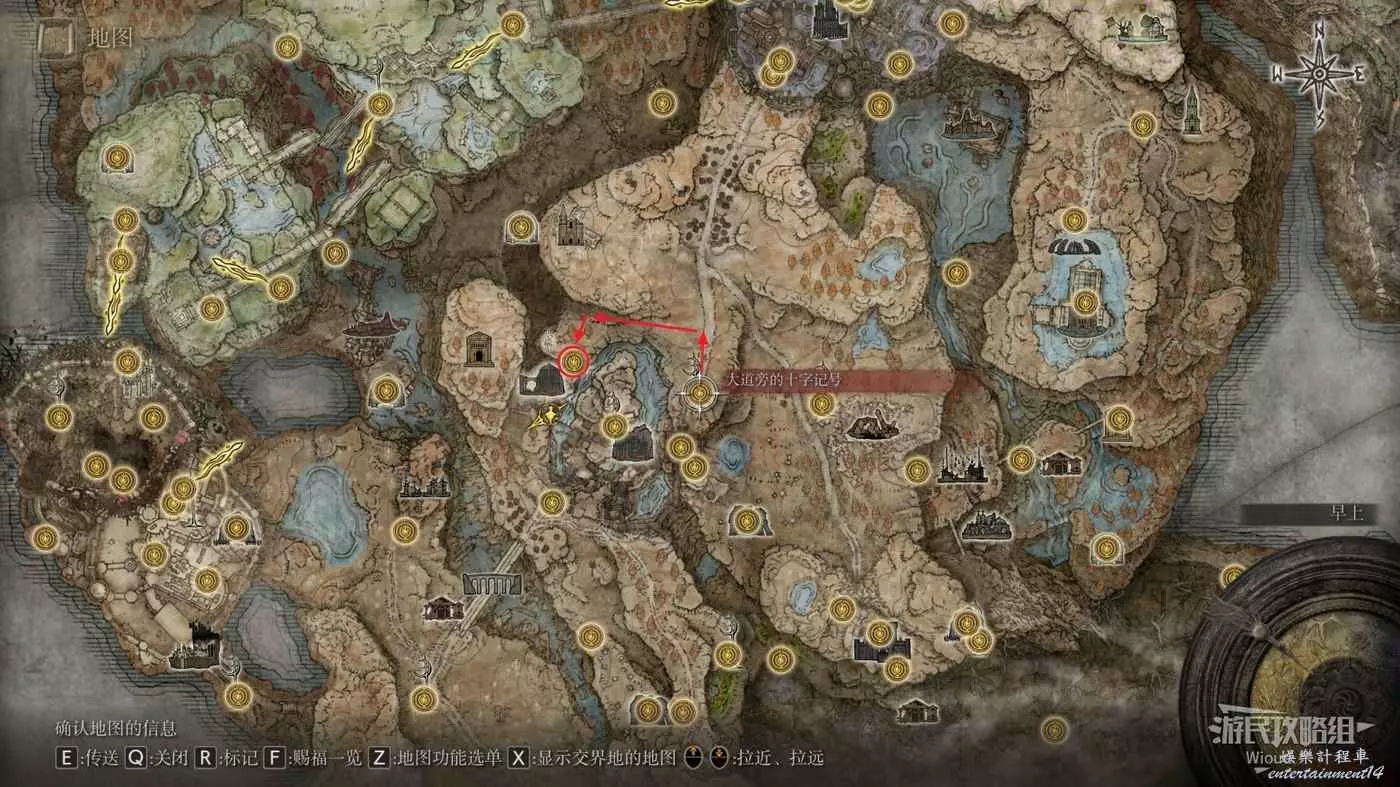 按照下圖路線從【穆斯廢墟】出發經過【古遺跡下方】賜福繼續往地圖左下走即可到達。