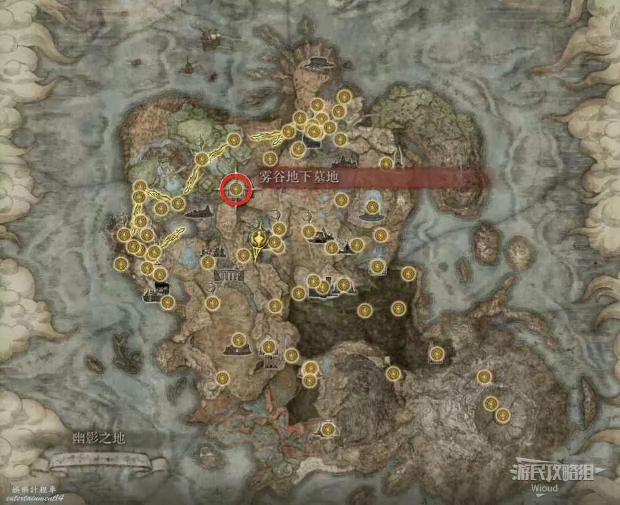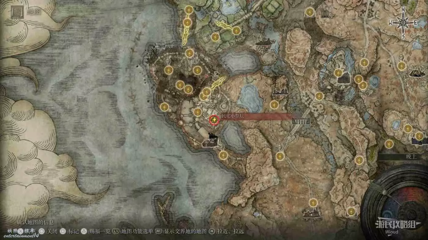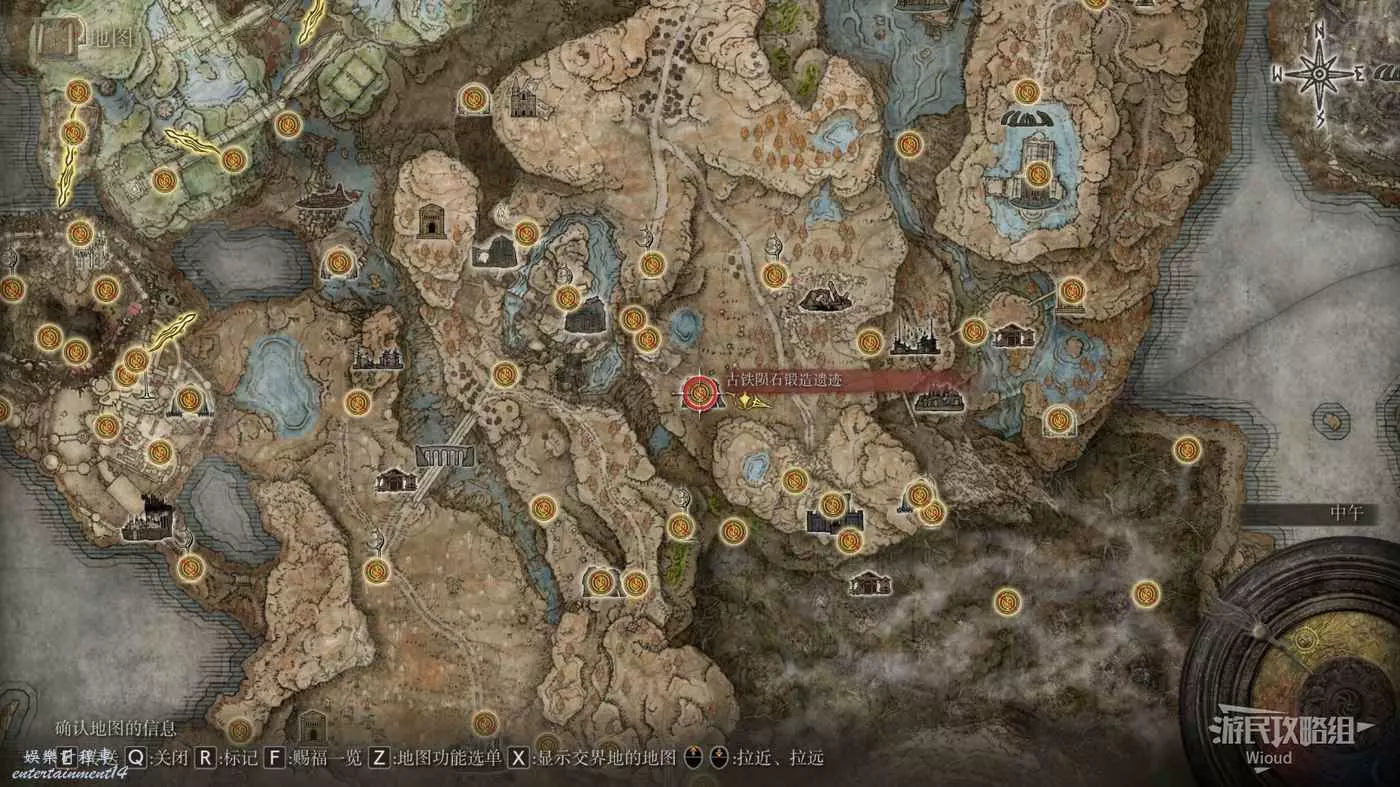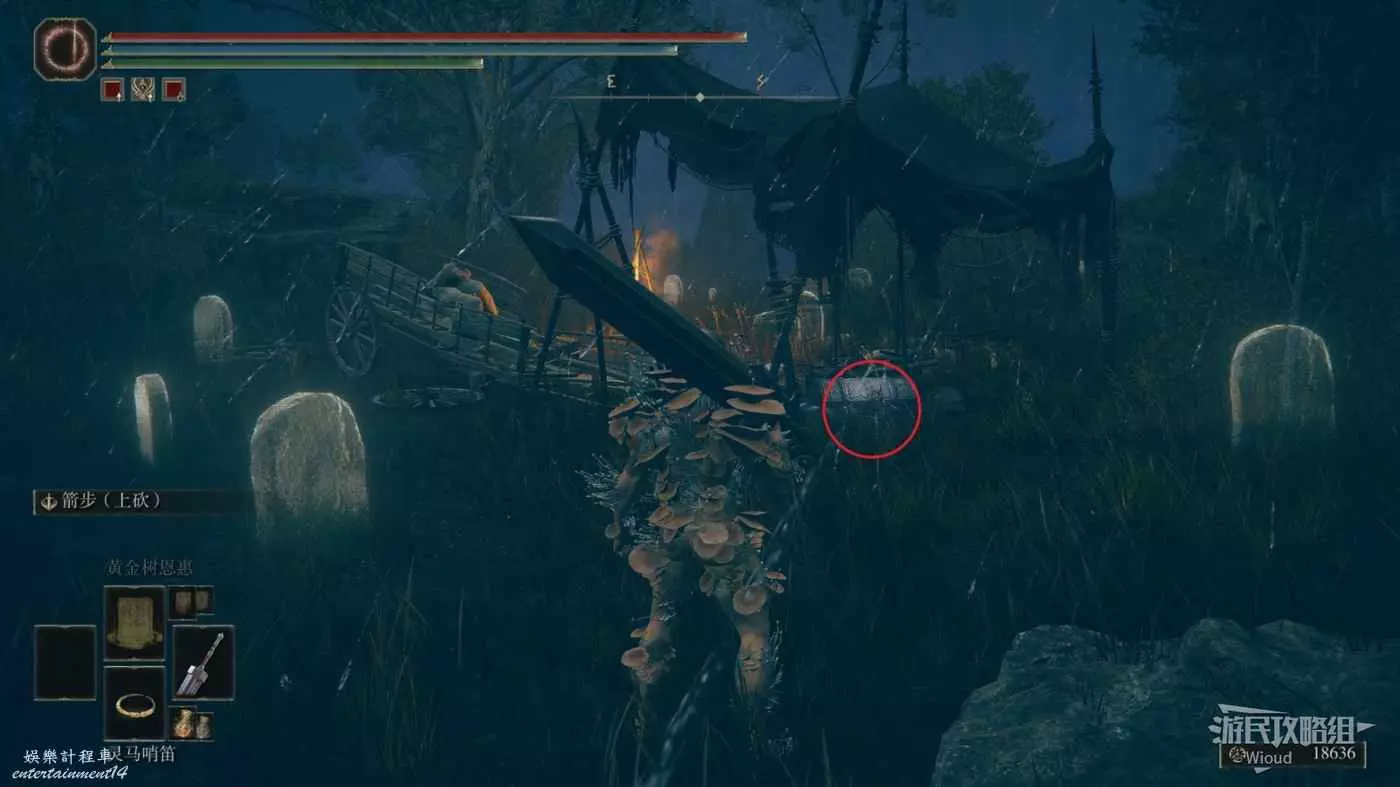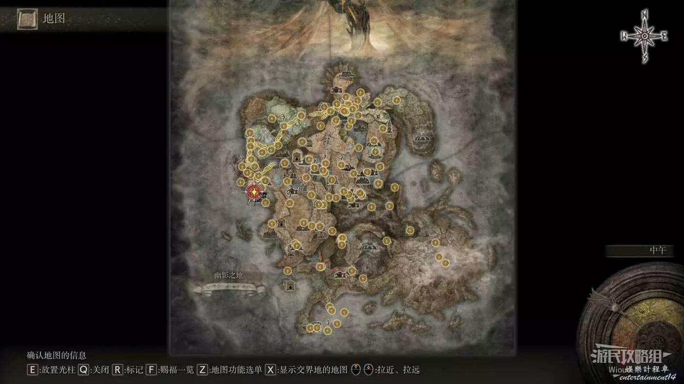 按照下圖路線從【穆斯廢墟】出發經過【古遺跡下方】賜福繼續往地圖左下走即可到達。