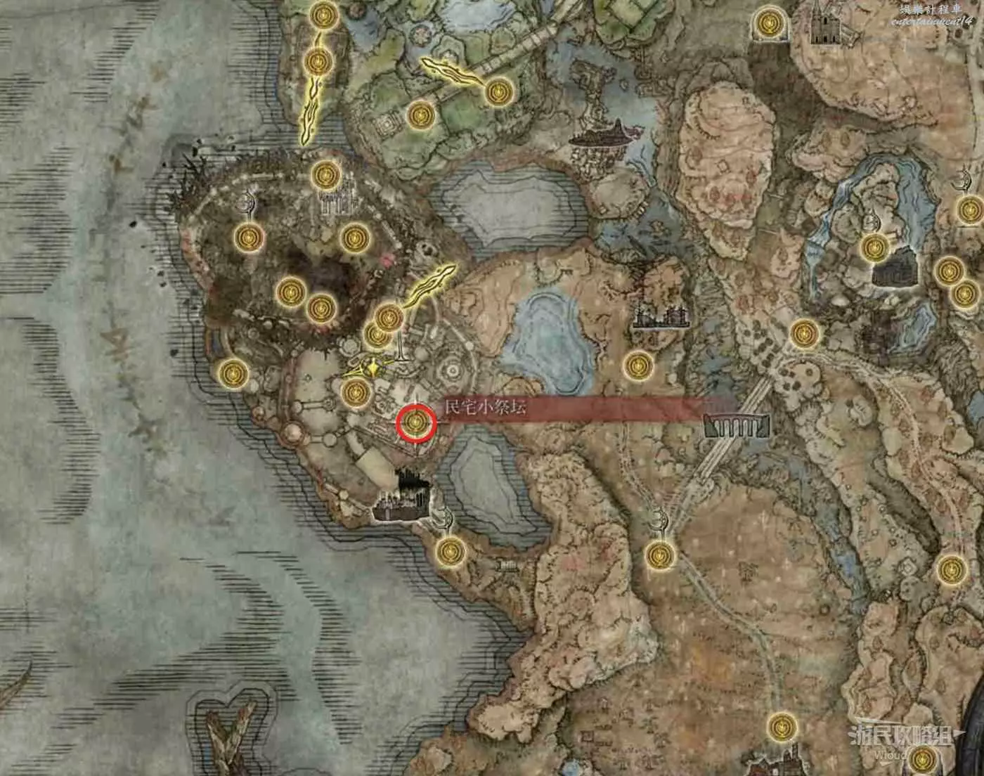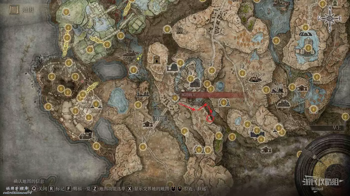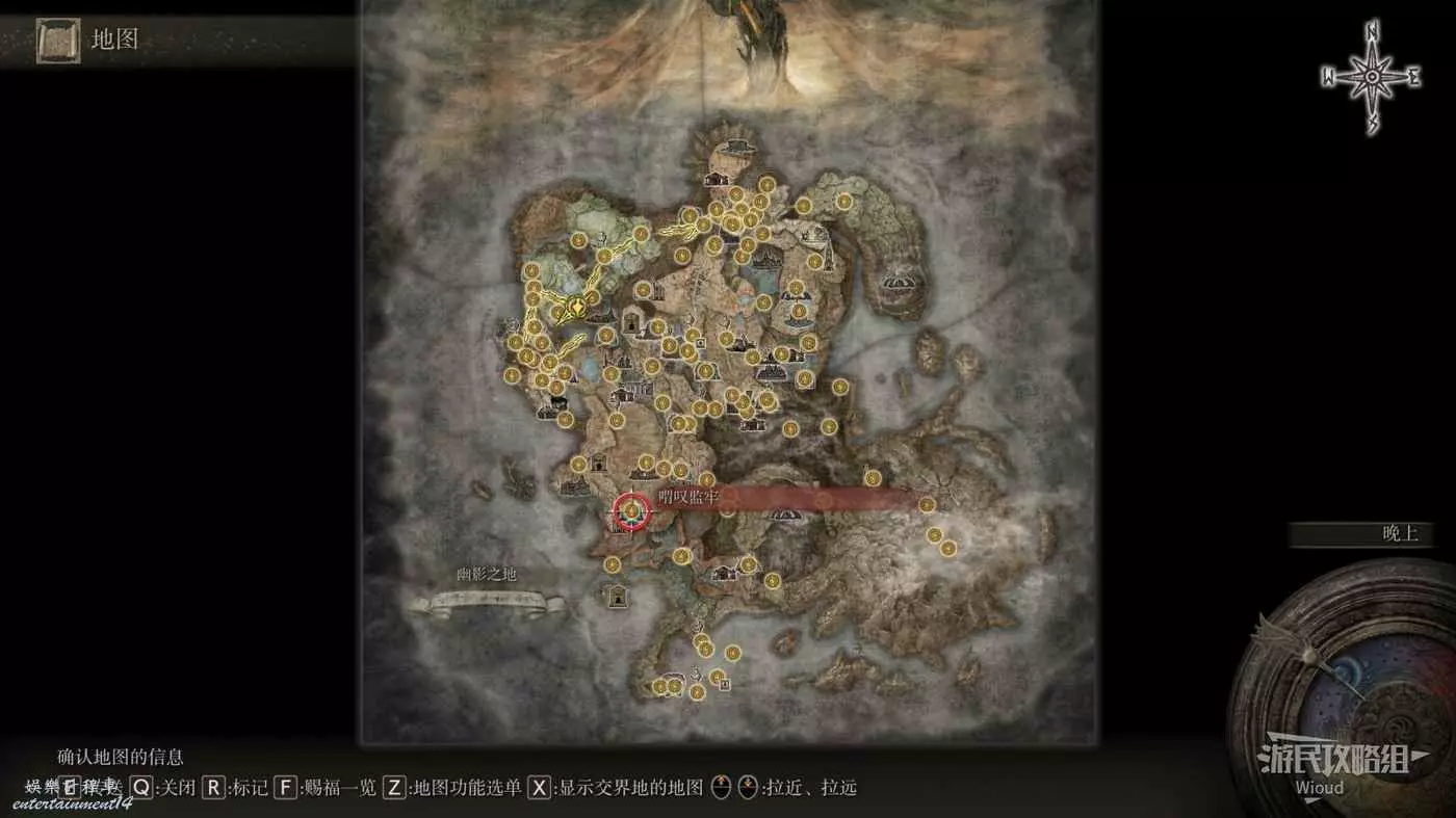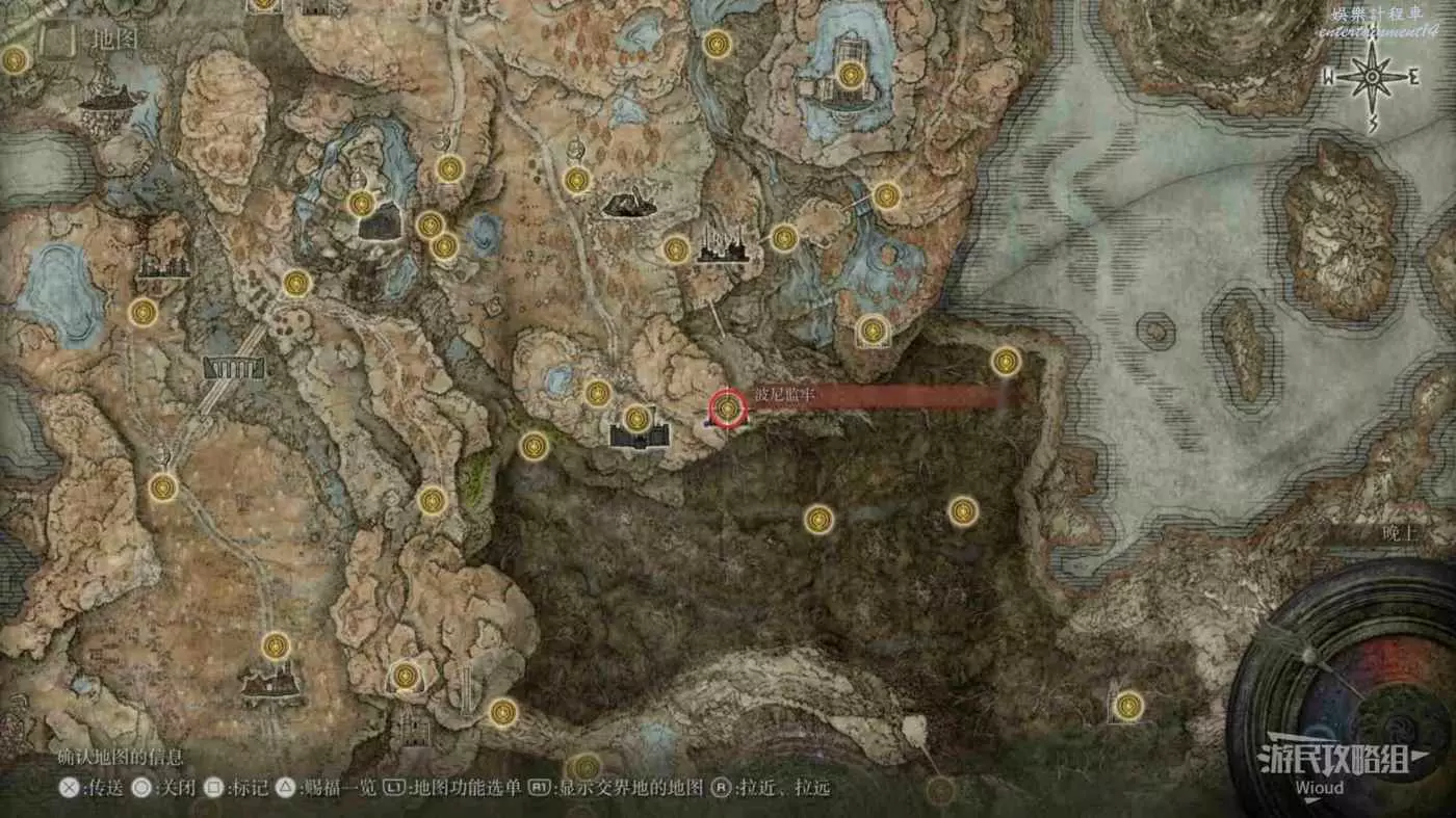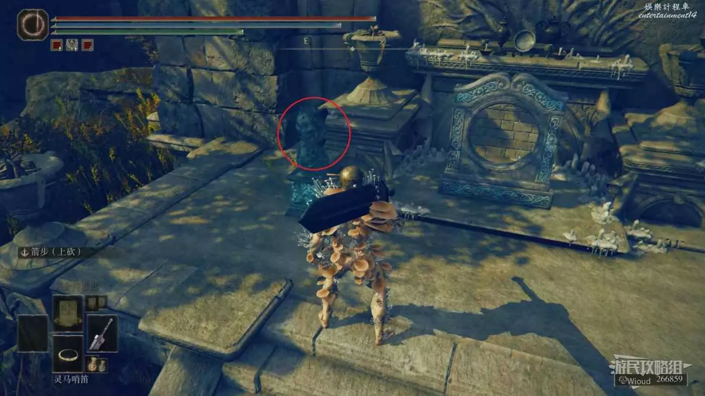 按照下圖路線從【穆斯廢墟】出發經過【古遺跡下方】賜福繼續往地圖左下走即可到達。