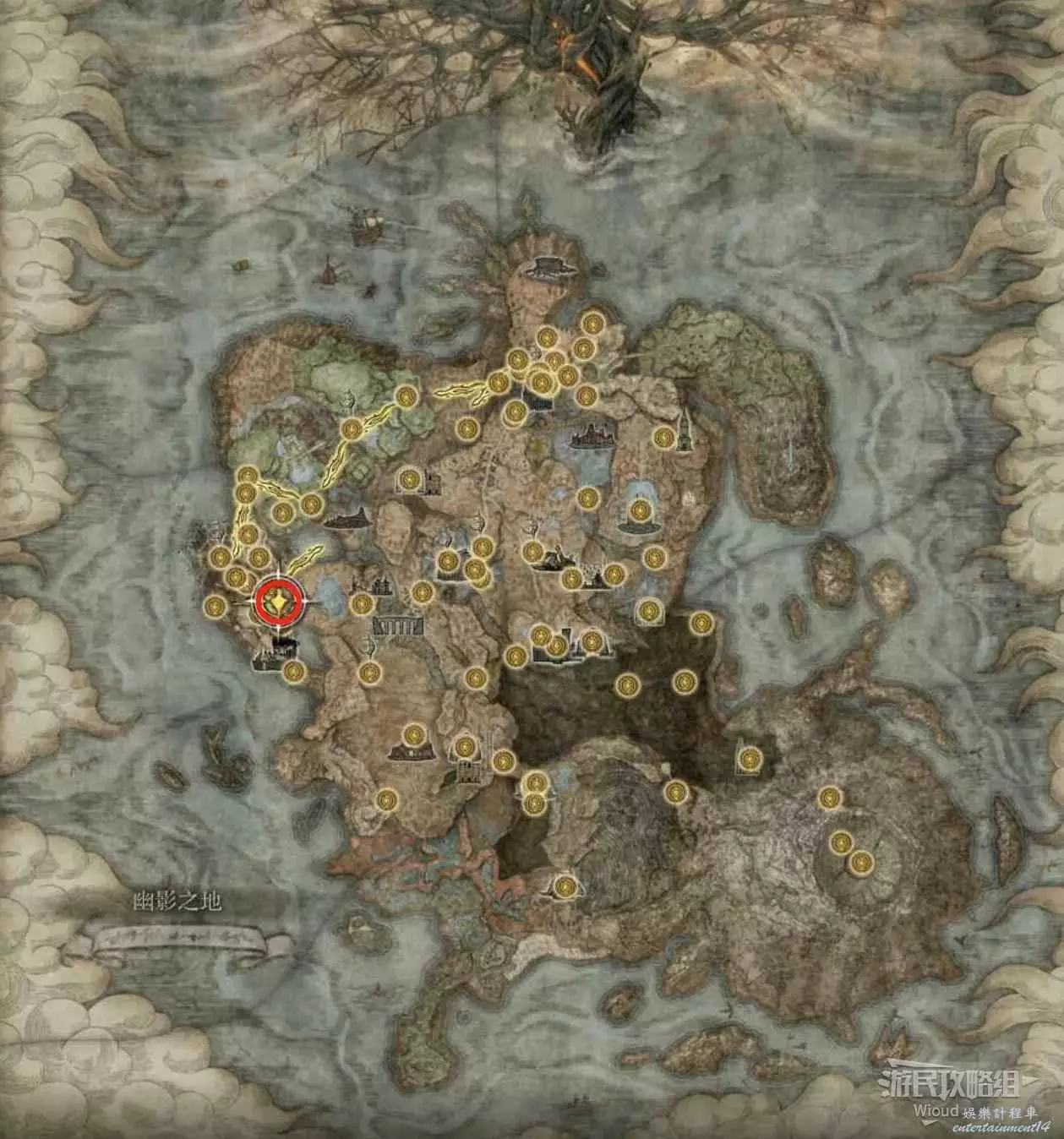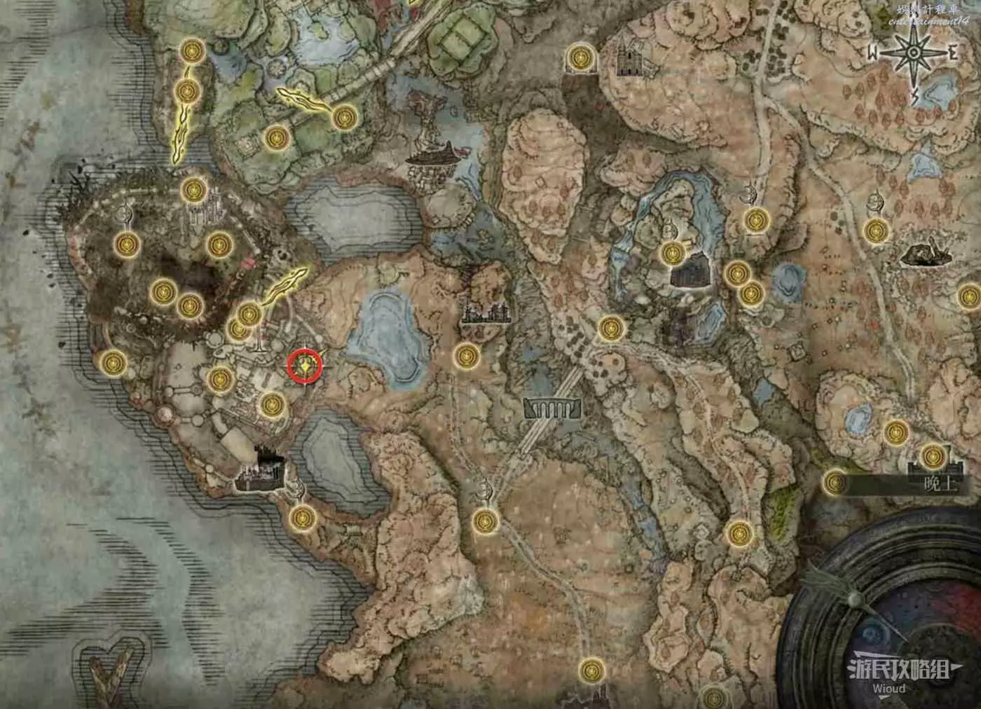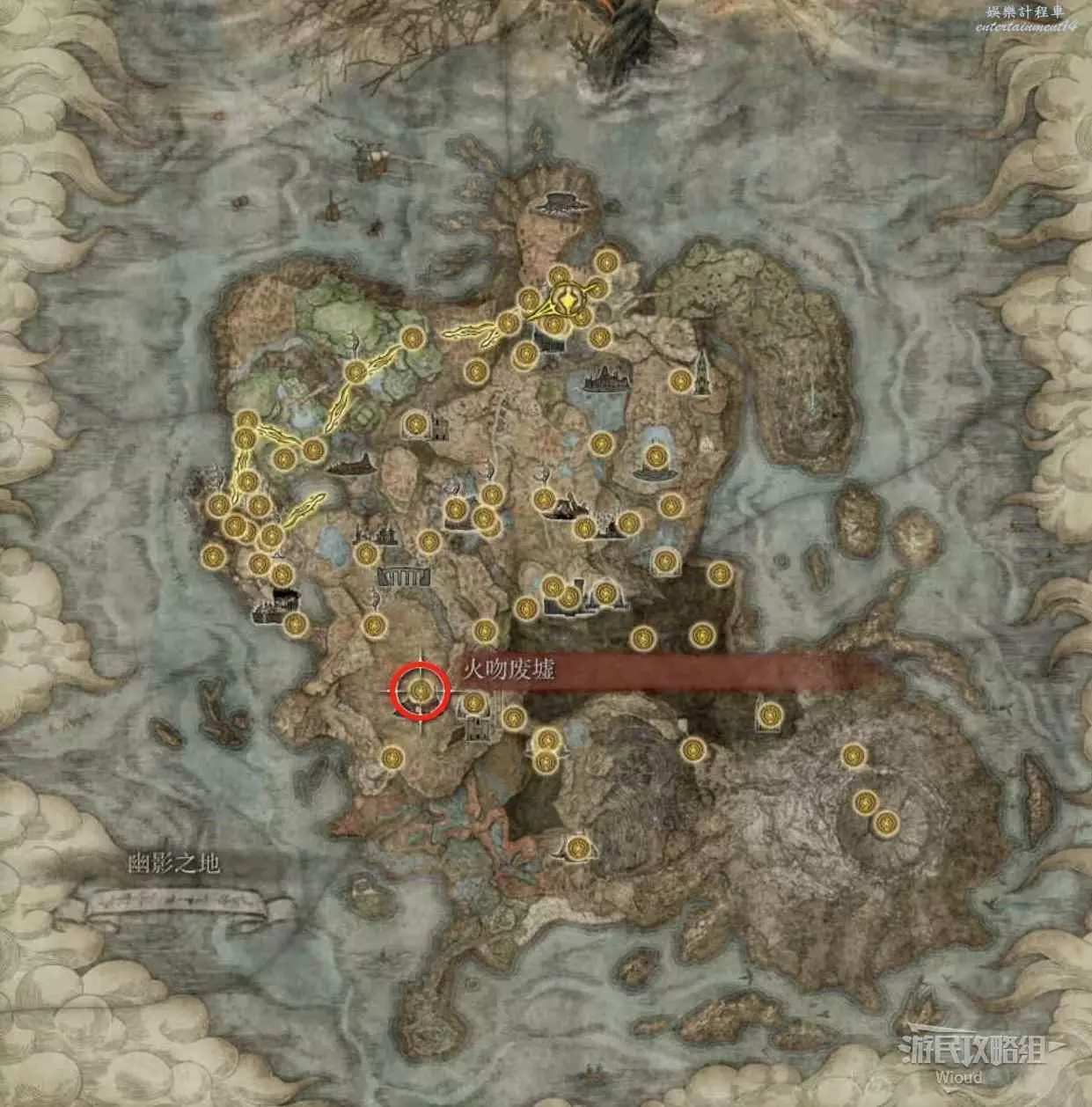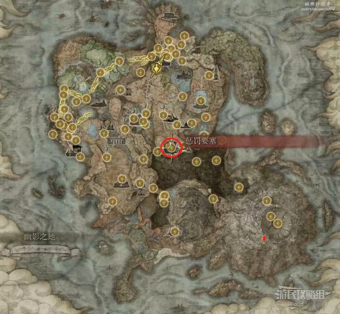 按照下圖路線從【穆斯廢墟】出發經過【古遺跡下方】賜福繼續往地圖左下走即可到達。