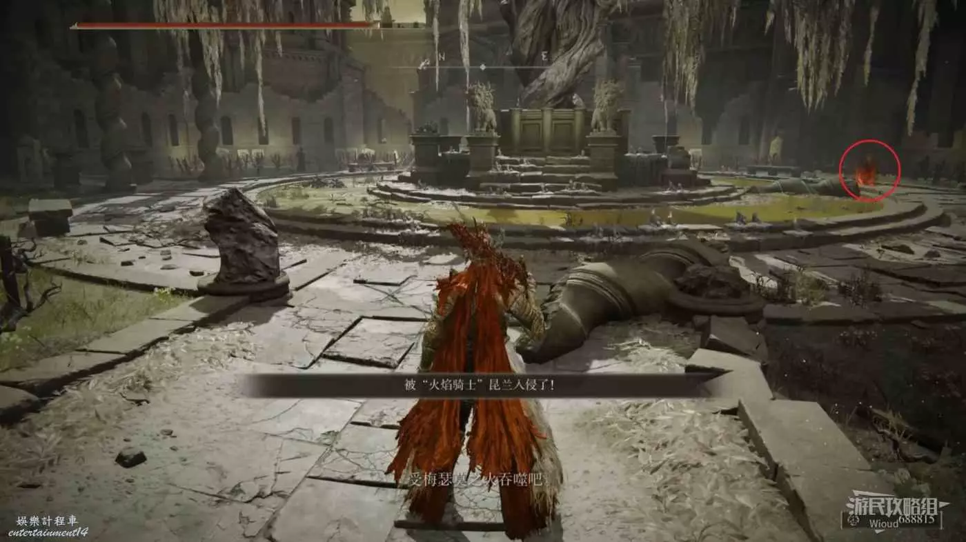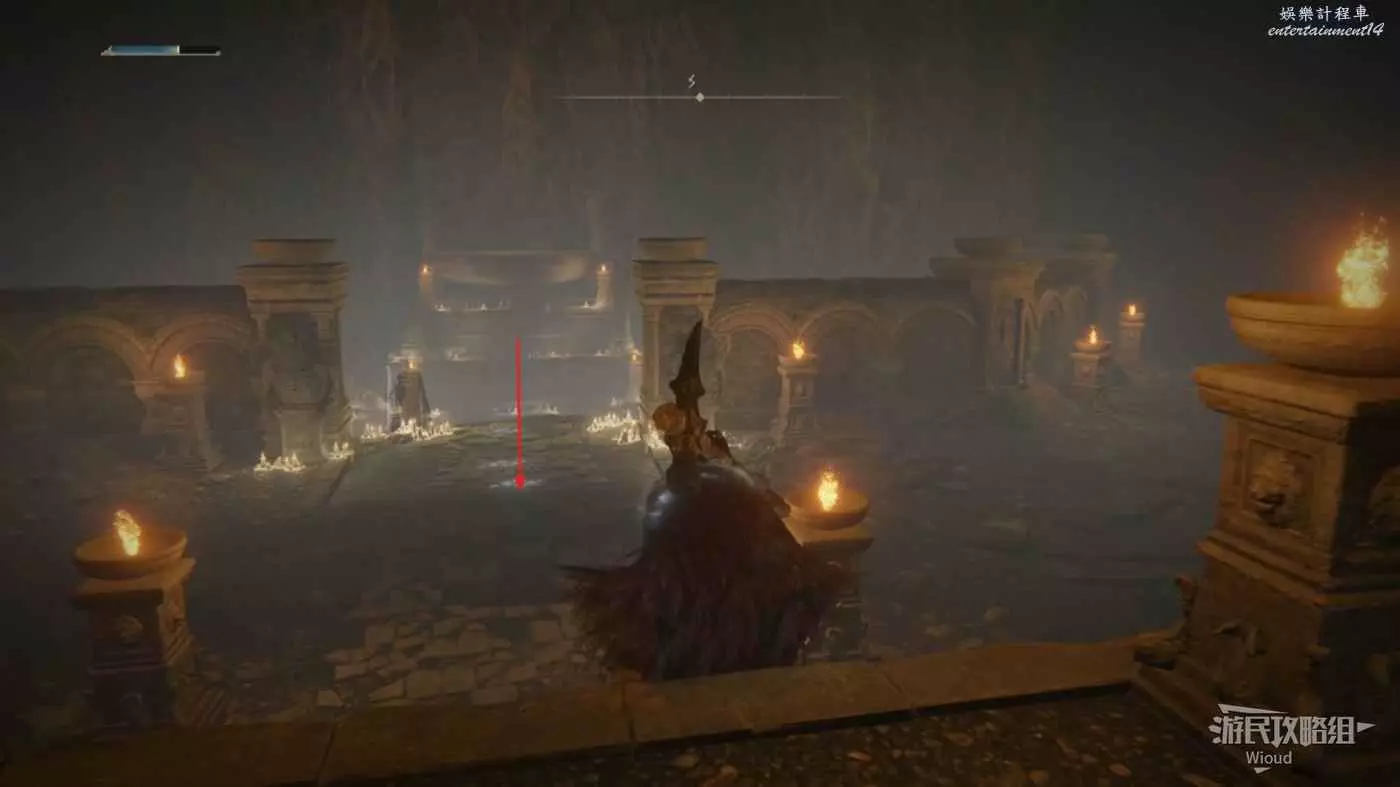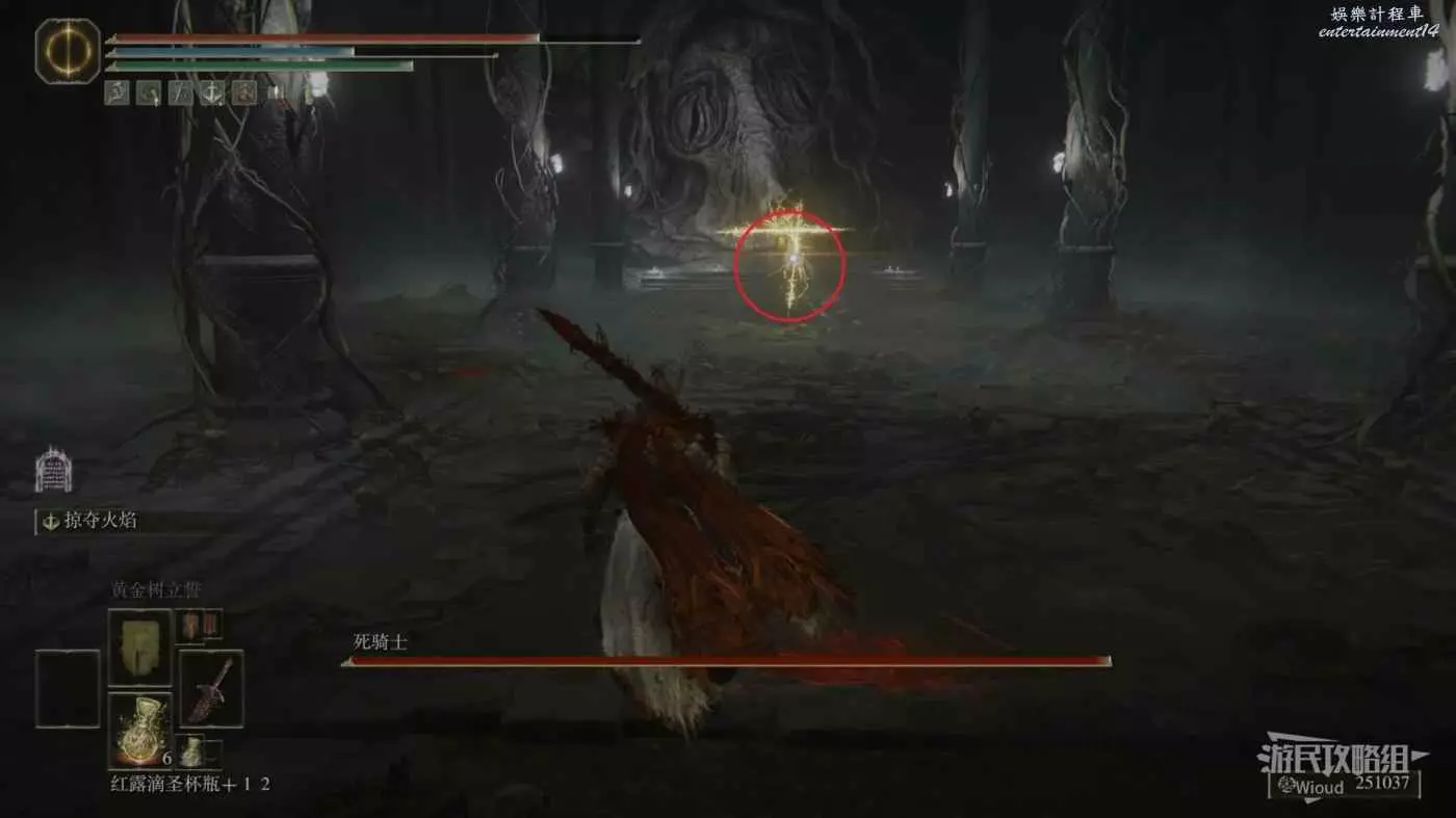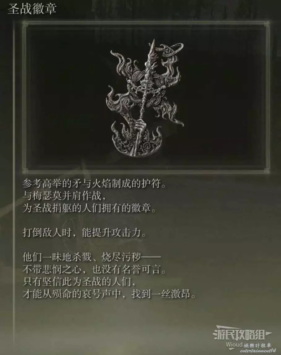 走到右側盡頭的廣場,此處會刷出一個紅靈【火焰騎士昆蘭】,將其擊敗獲得護符【聖戰徽章】。