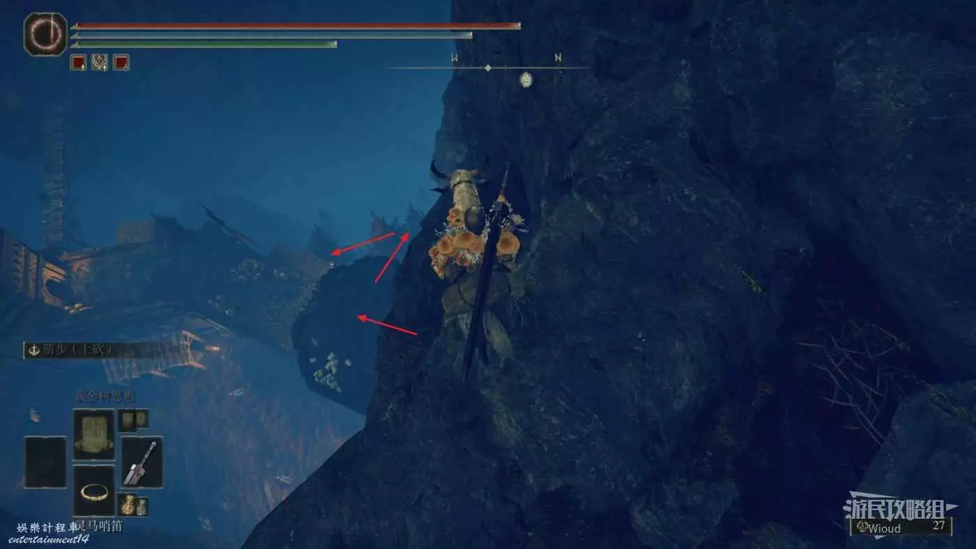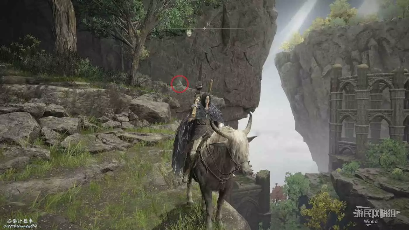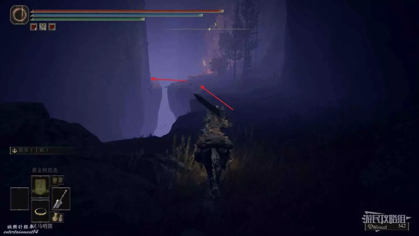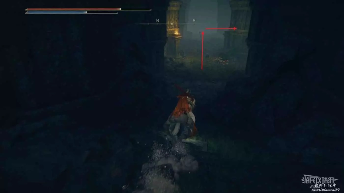 然後從第二個賜福繼續往右邊走,按照下圖路線走到盡頭處的懸崖。
