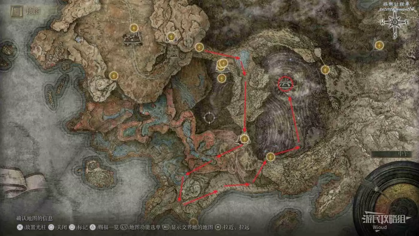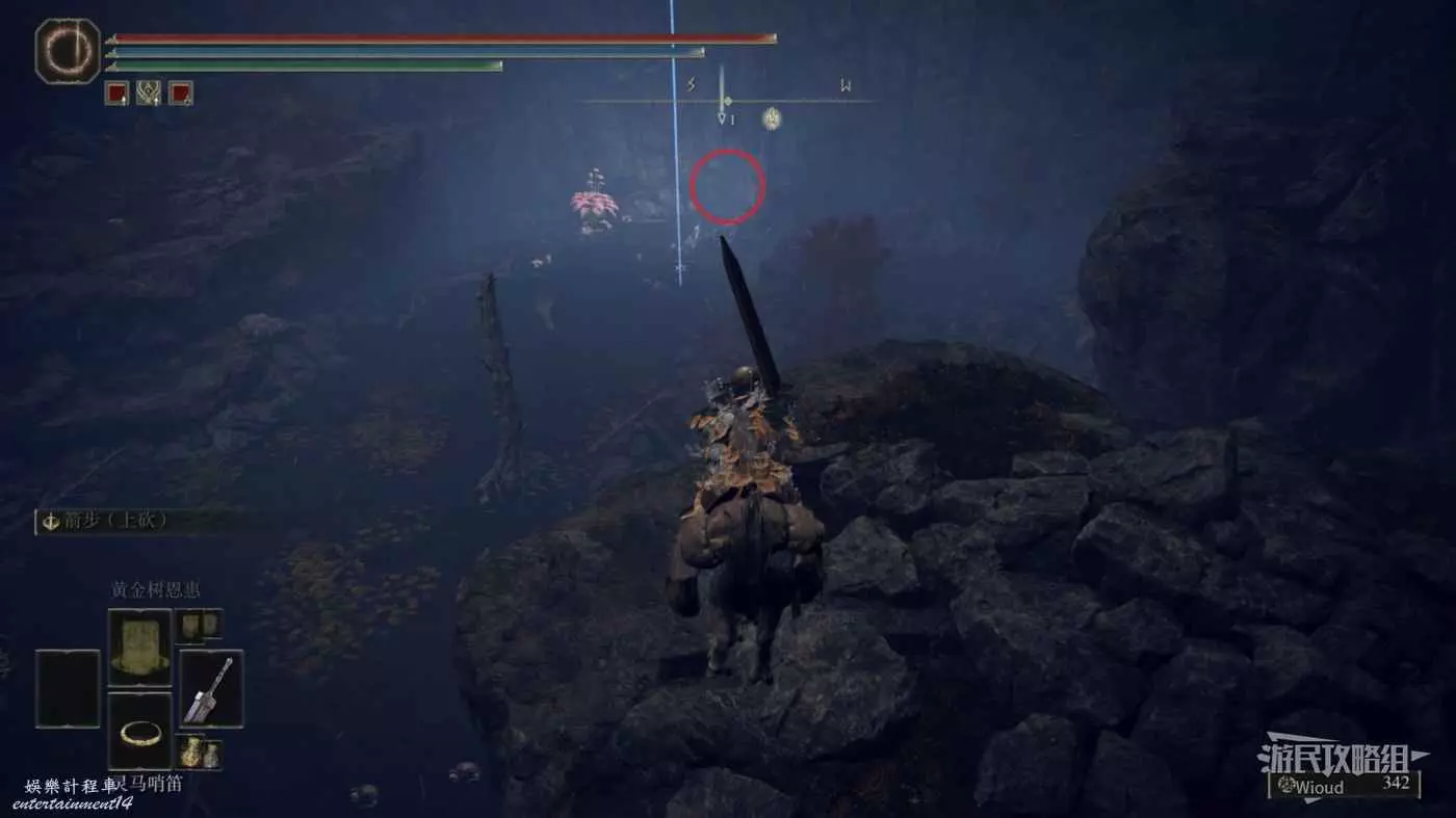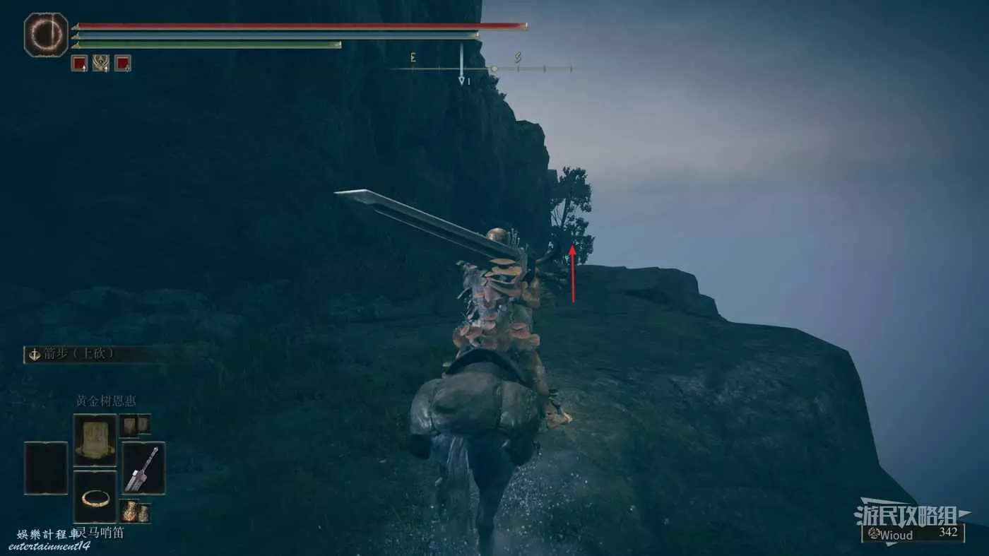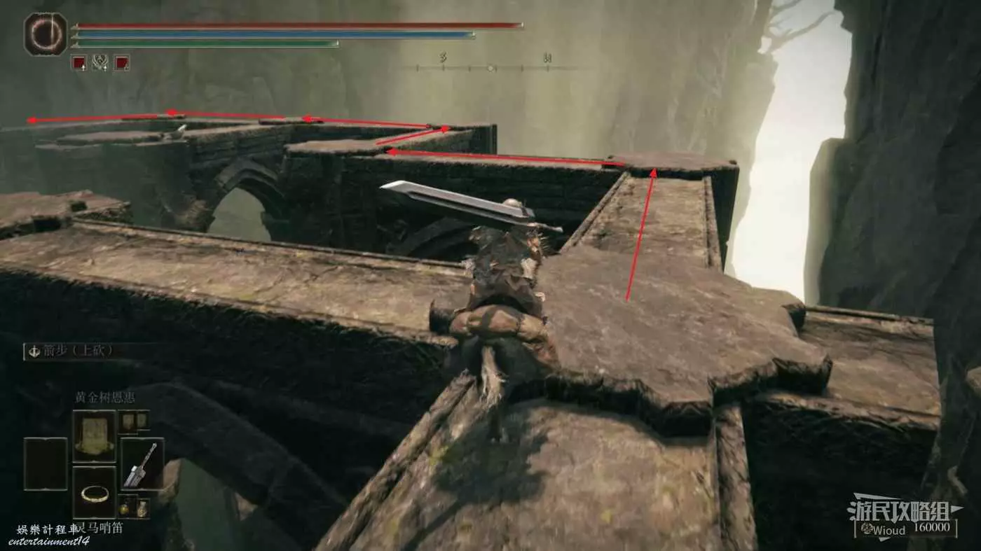 然後從第二個賜福繼續往右邊走,按照下圖路線走到盡頭處的懸崖。