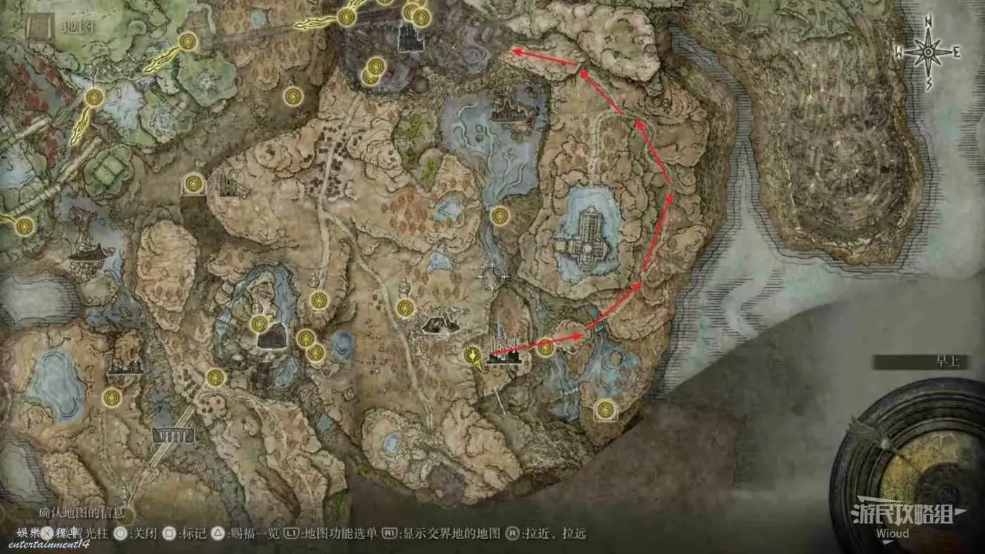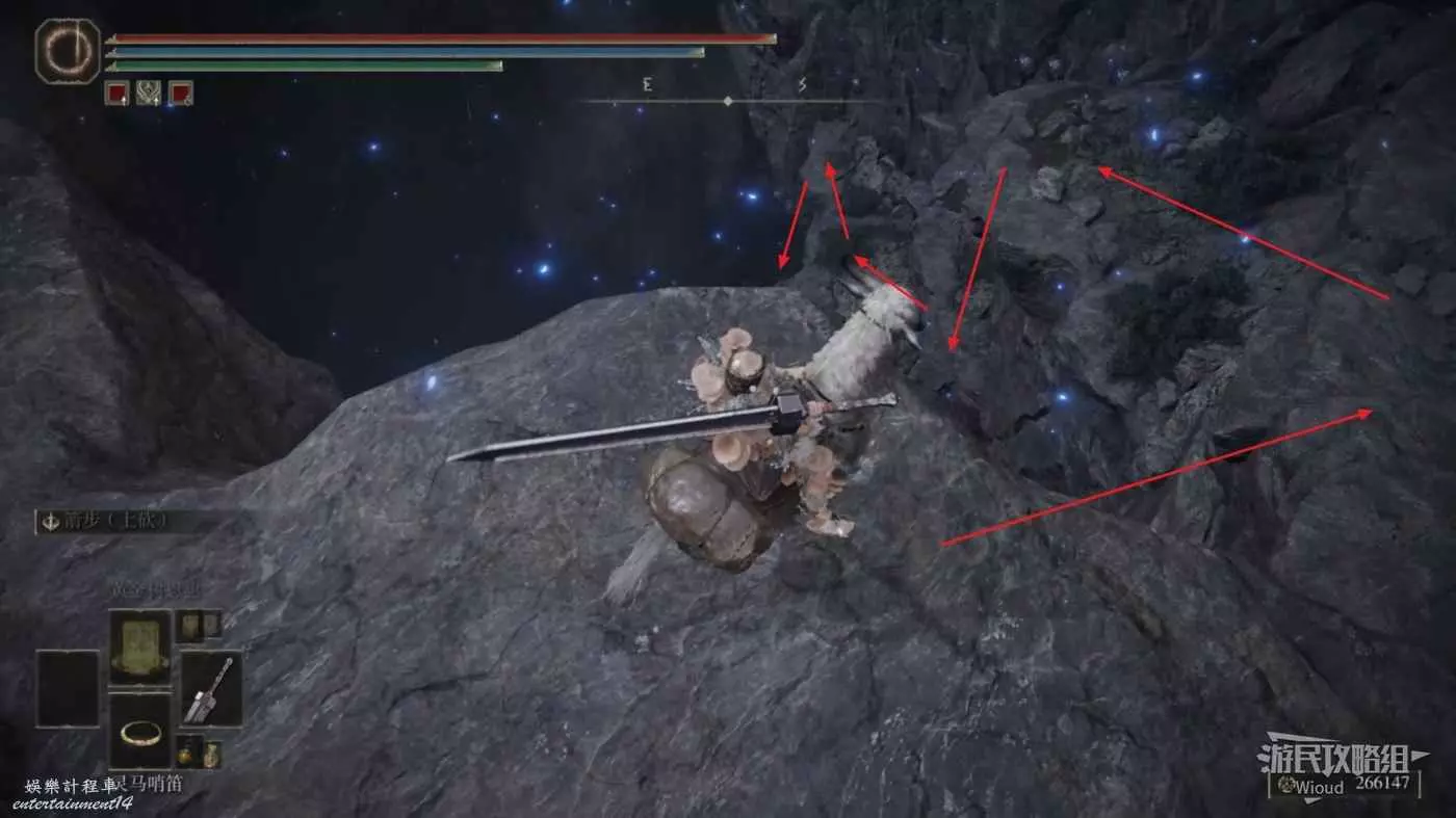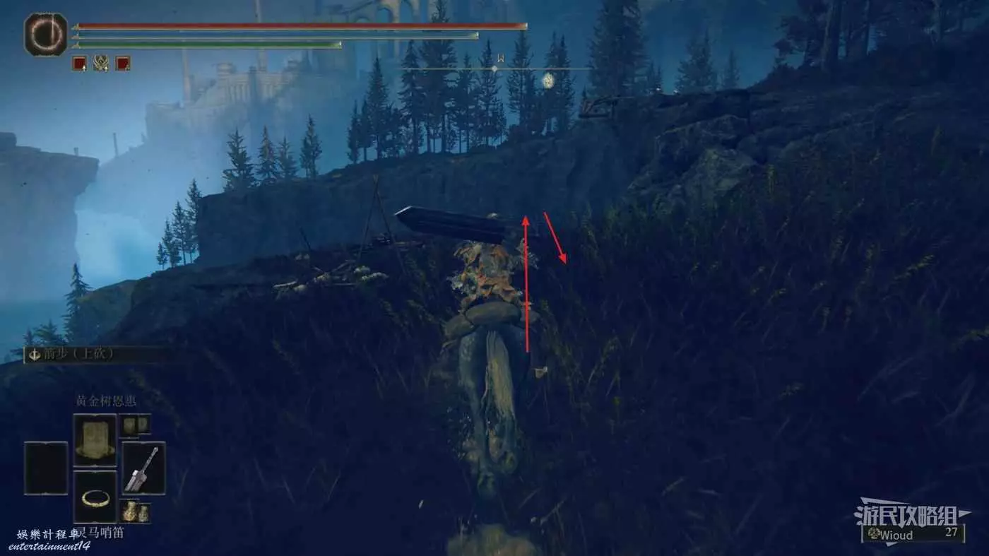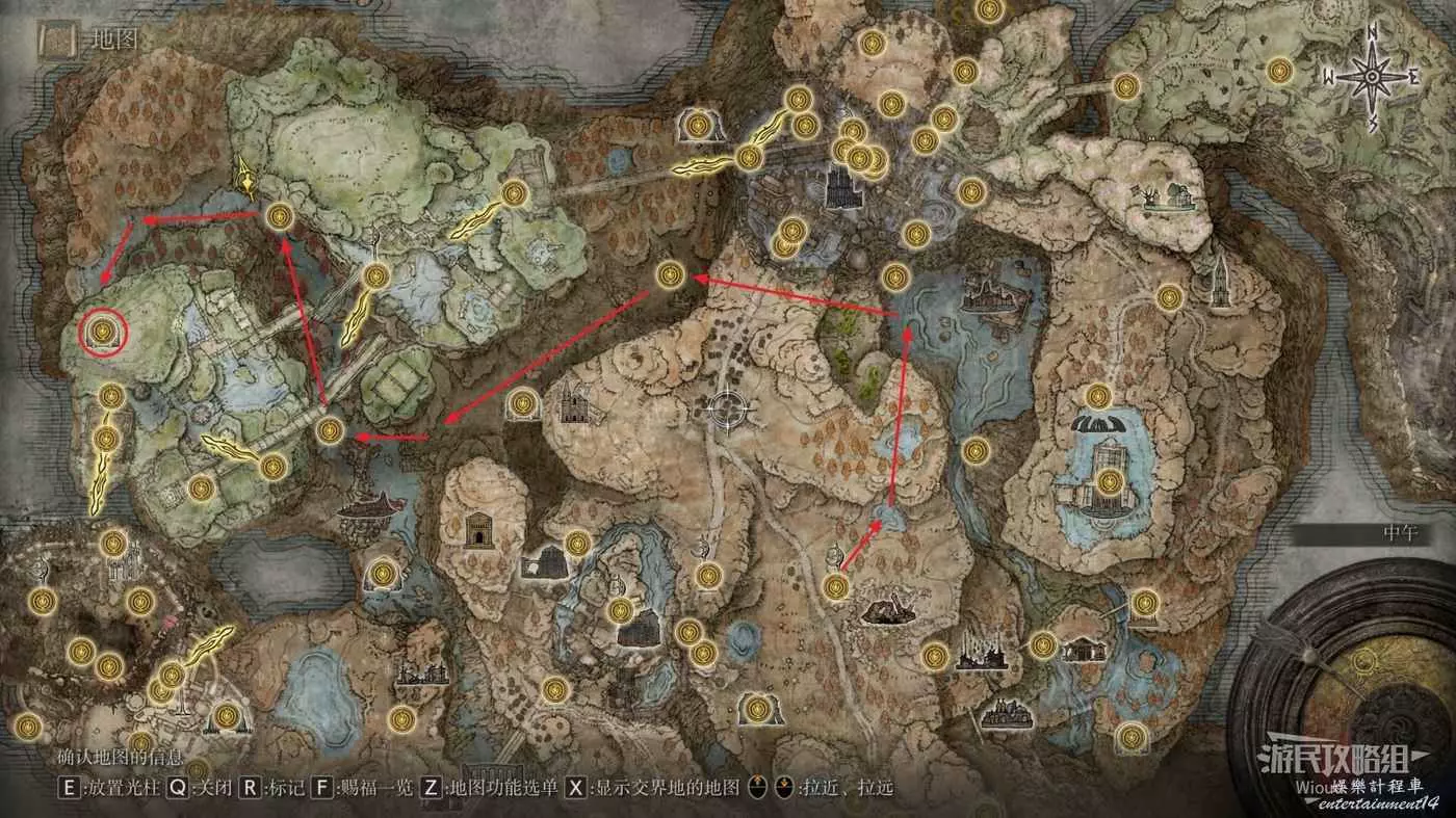 然後從第二個賜福繼續往右邊走,按照下圖路線走到盡頭處的懸崖。