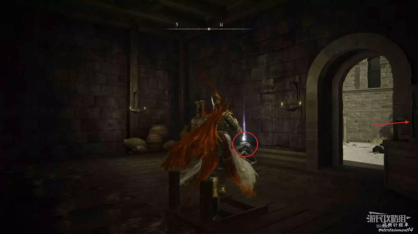 從絞刑架右後方的樓梯進入要塞,直走再左拐進入左側房間,然後繼續左邊的房間走。