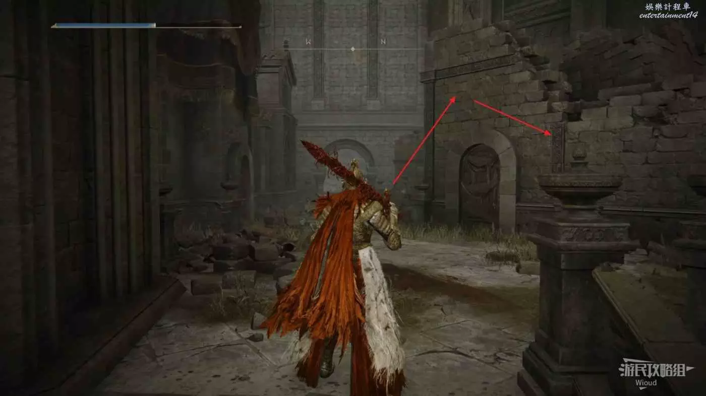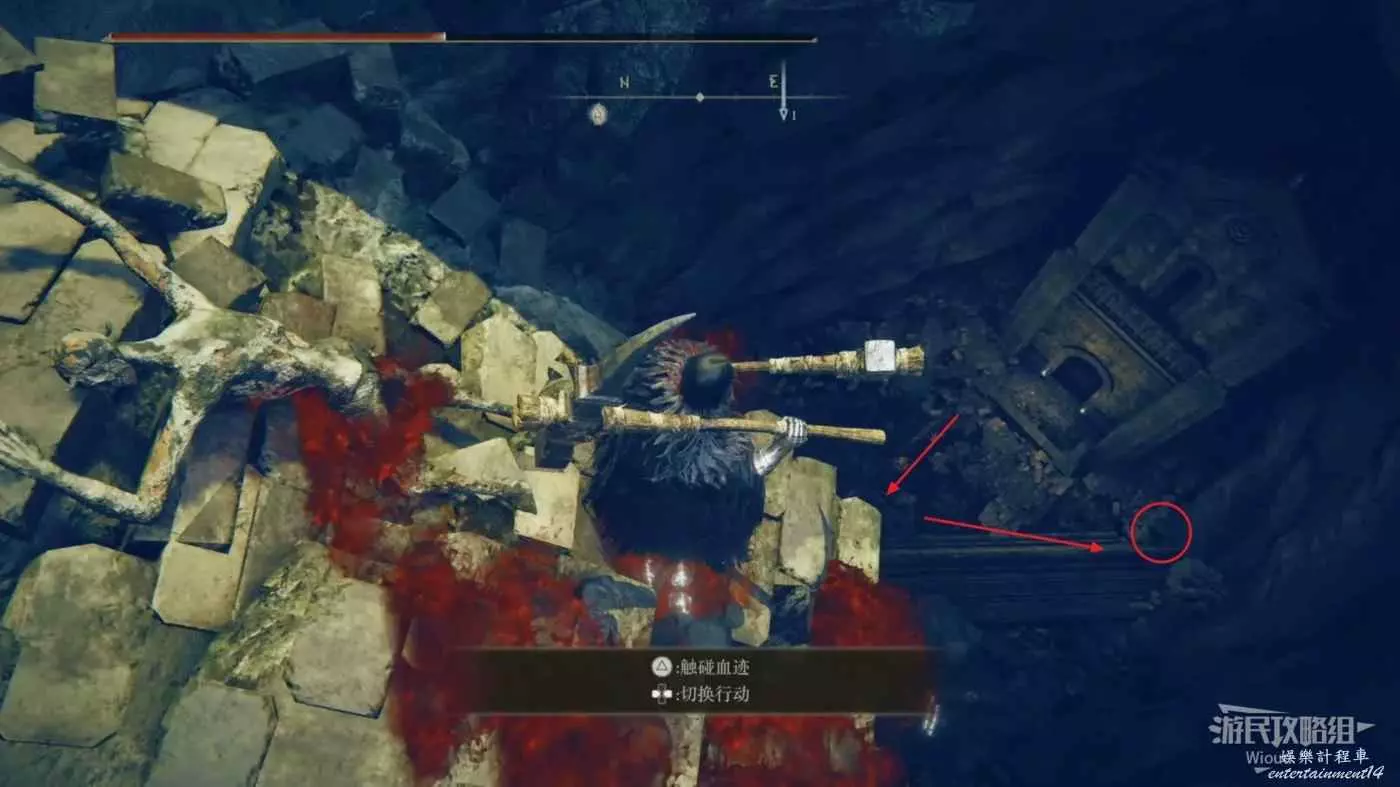 從賜福【大洞的十字記號】開始往左前方走,沿著前方破敗的廢墟一直走即可到達下一個賜福的位置,沒啥容易迷路的點。