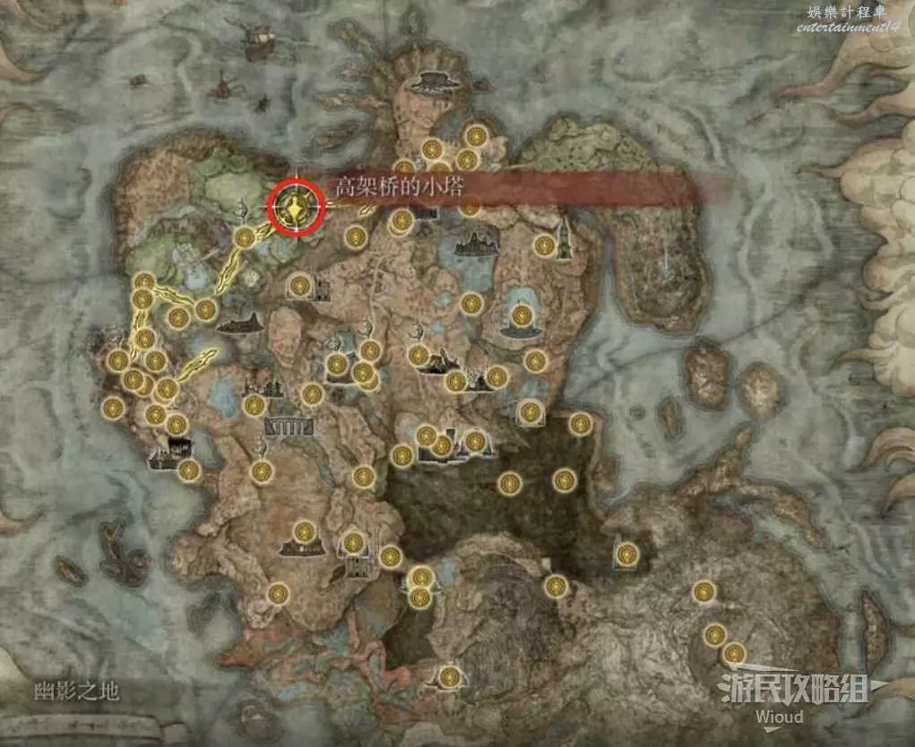 從賜福【高架橋的小塔】出發沿路一直走就能看到盡頭右側的遺跡入口。