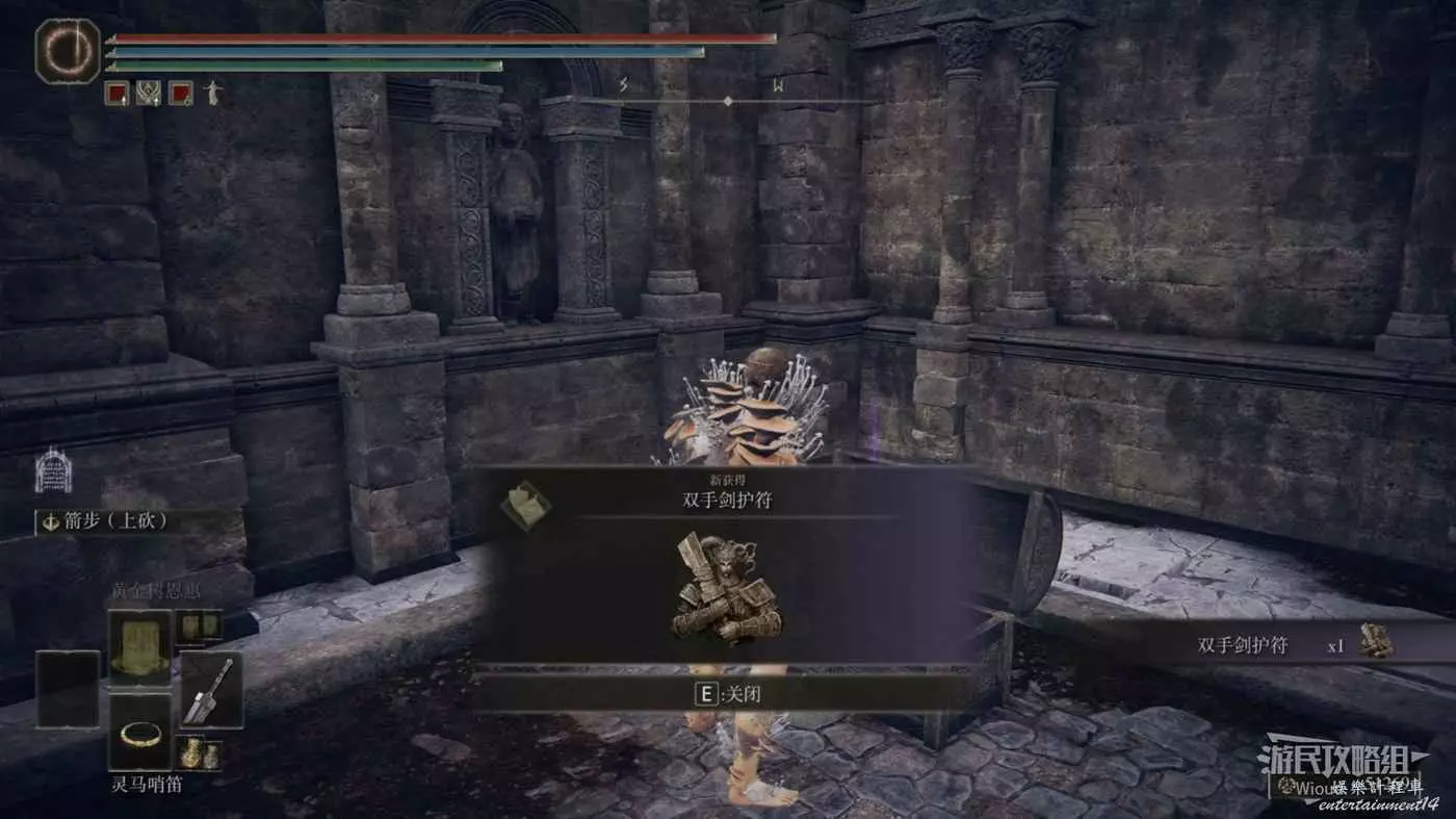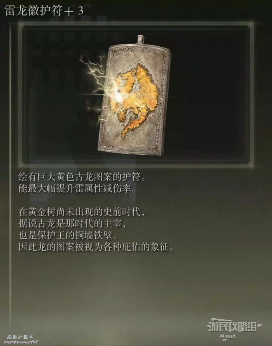 下面房間的屍體處可以拾取到【雷龍徽護符+3】。