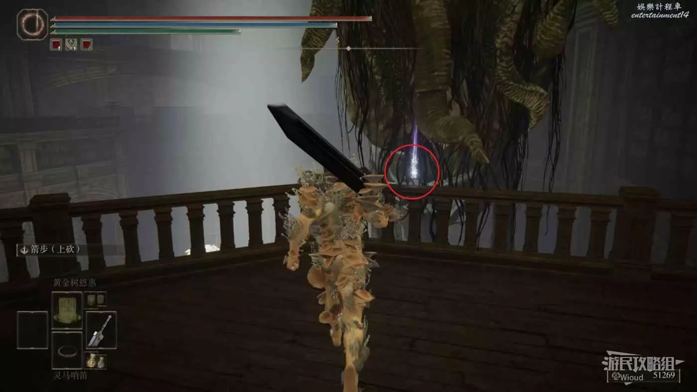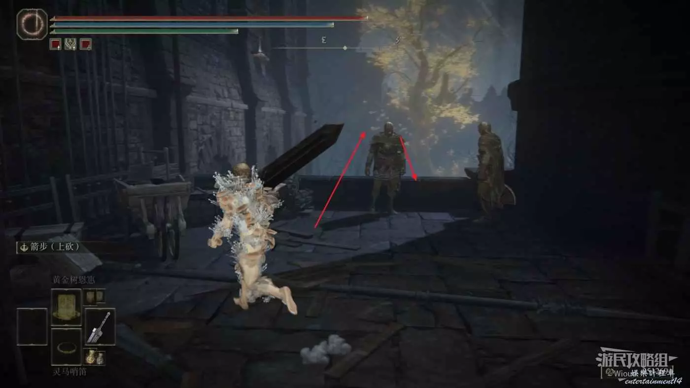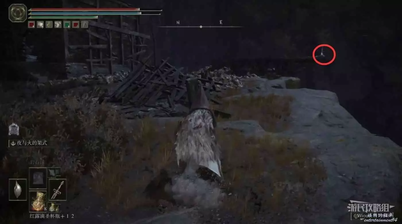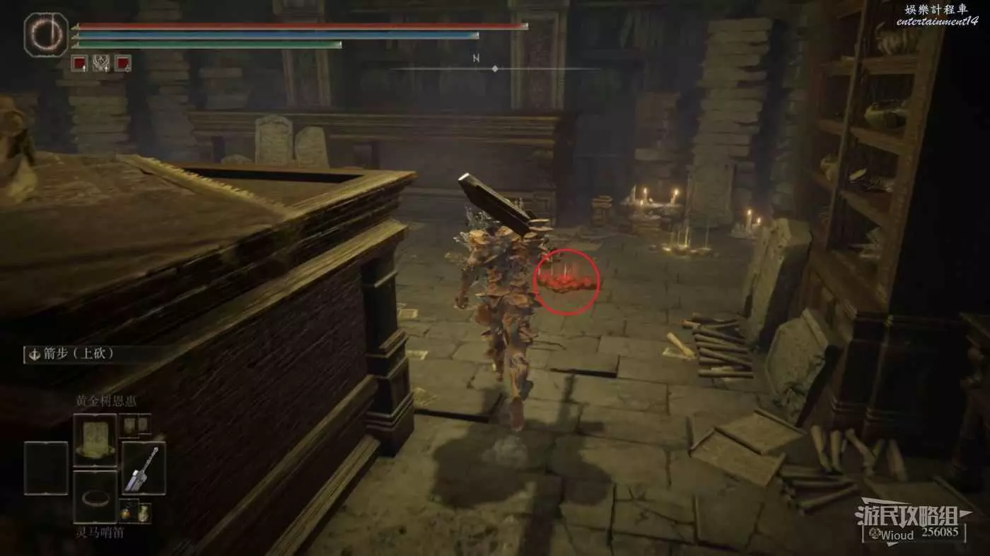 首先傳送到塔之鎮的賜福【民宅小祭壇】,往前走出門走過樓梯並擊敗一個拿著大刀的角戰士後往右邊一直走。