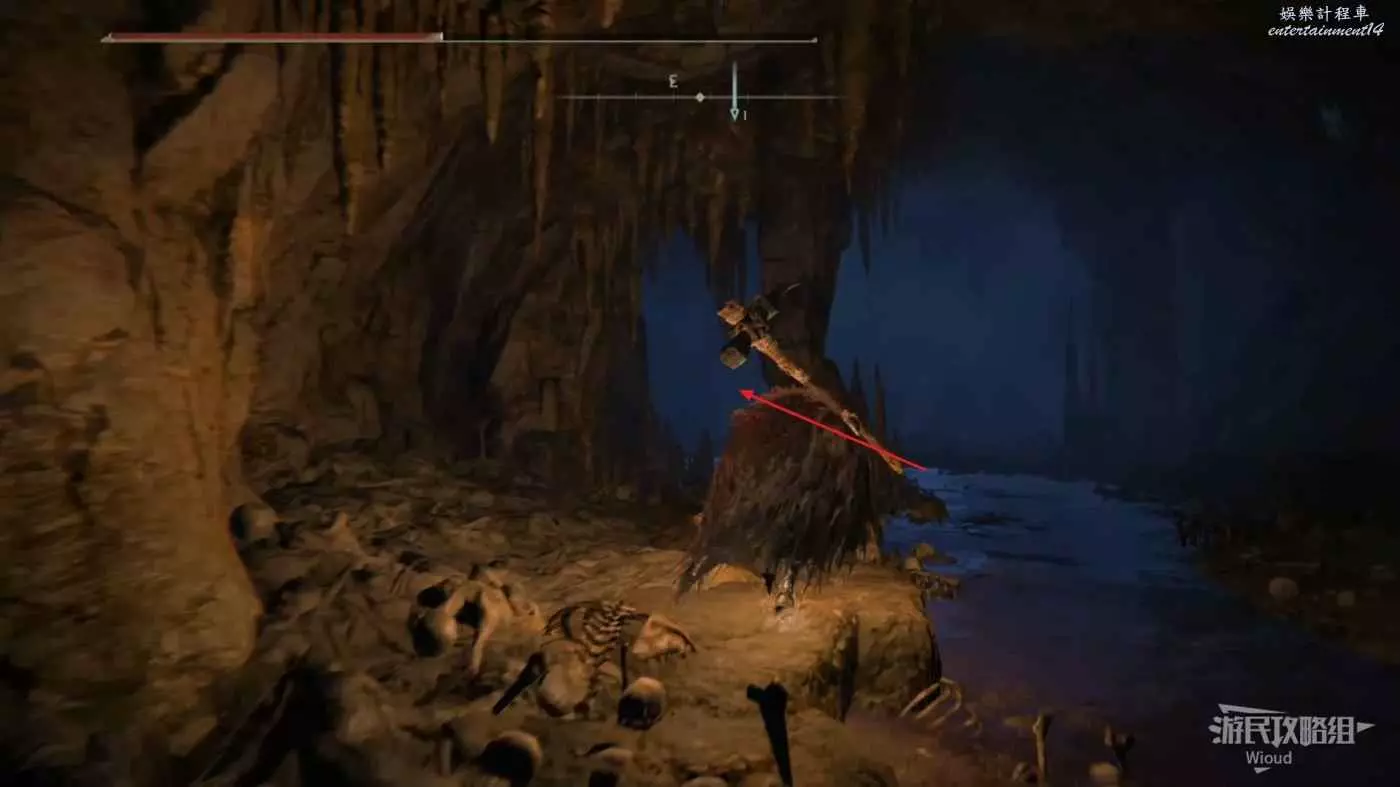 跳到地洞的最底層,沿著右側的洞窟走到地圖另一邊。