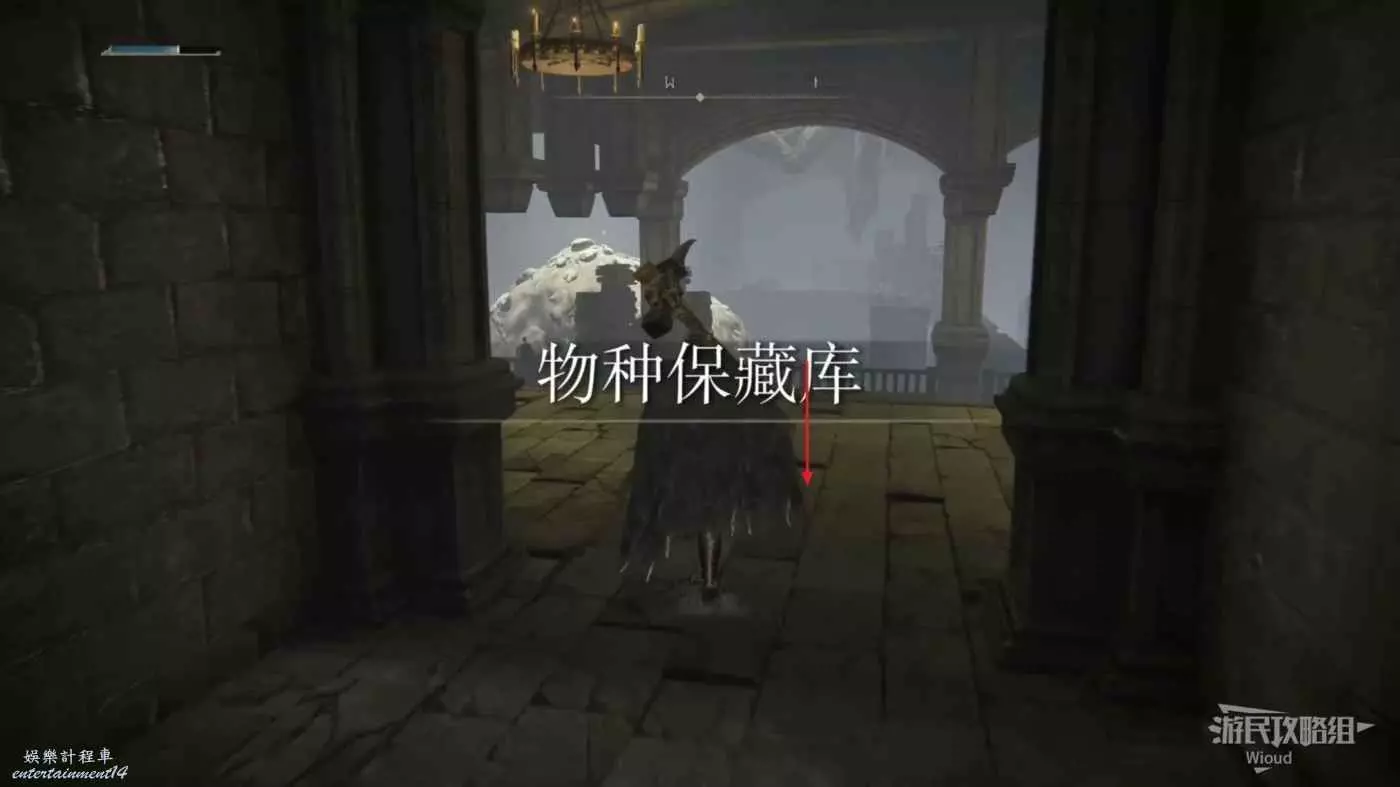 從幽影城【正門廣場】賜福開始,進入左側的房間,沿著樓梯往上爬到第二層。