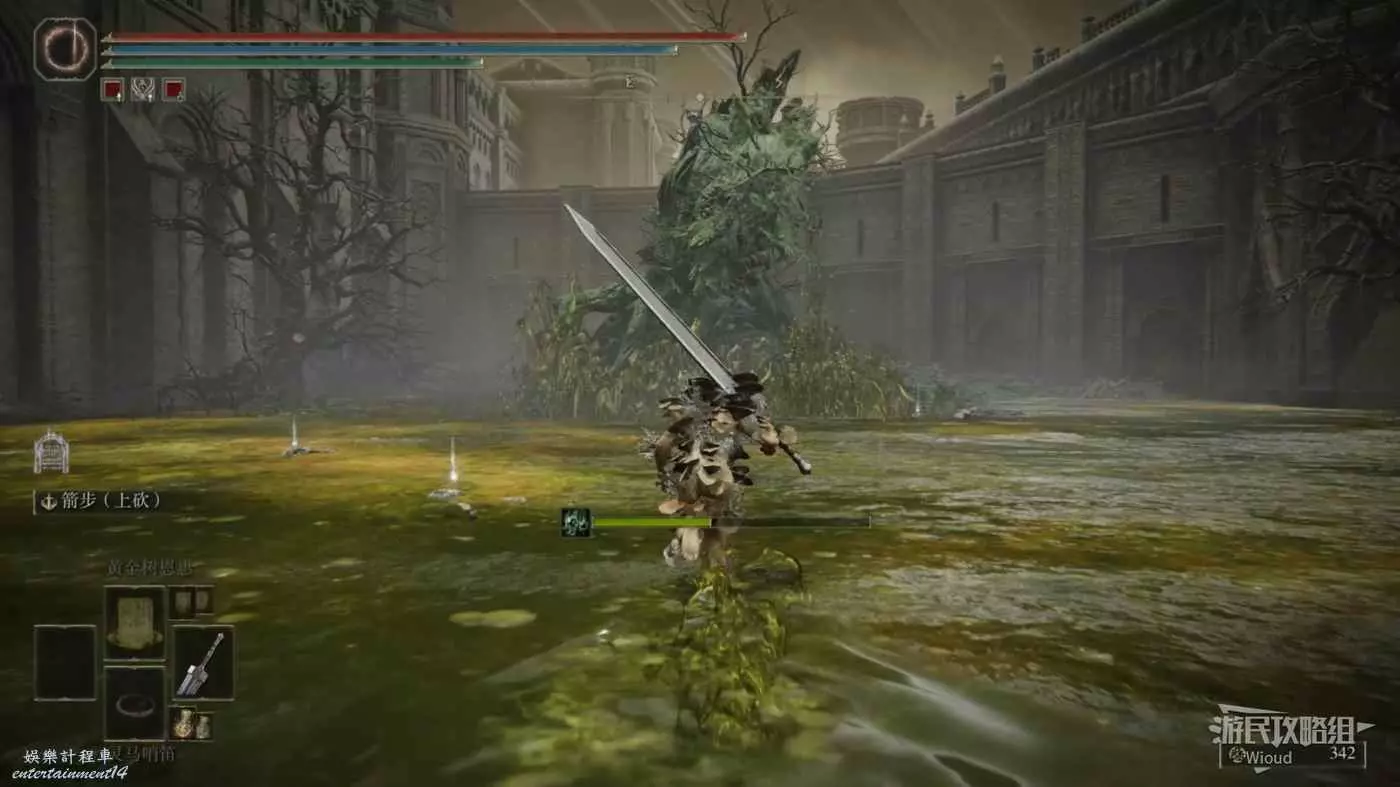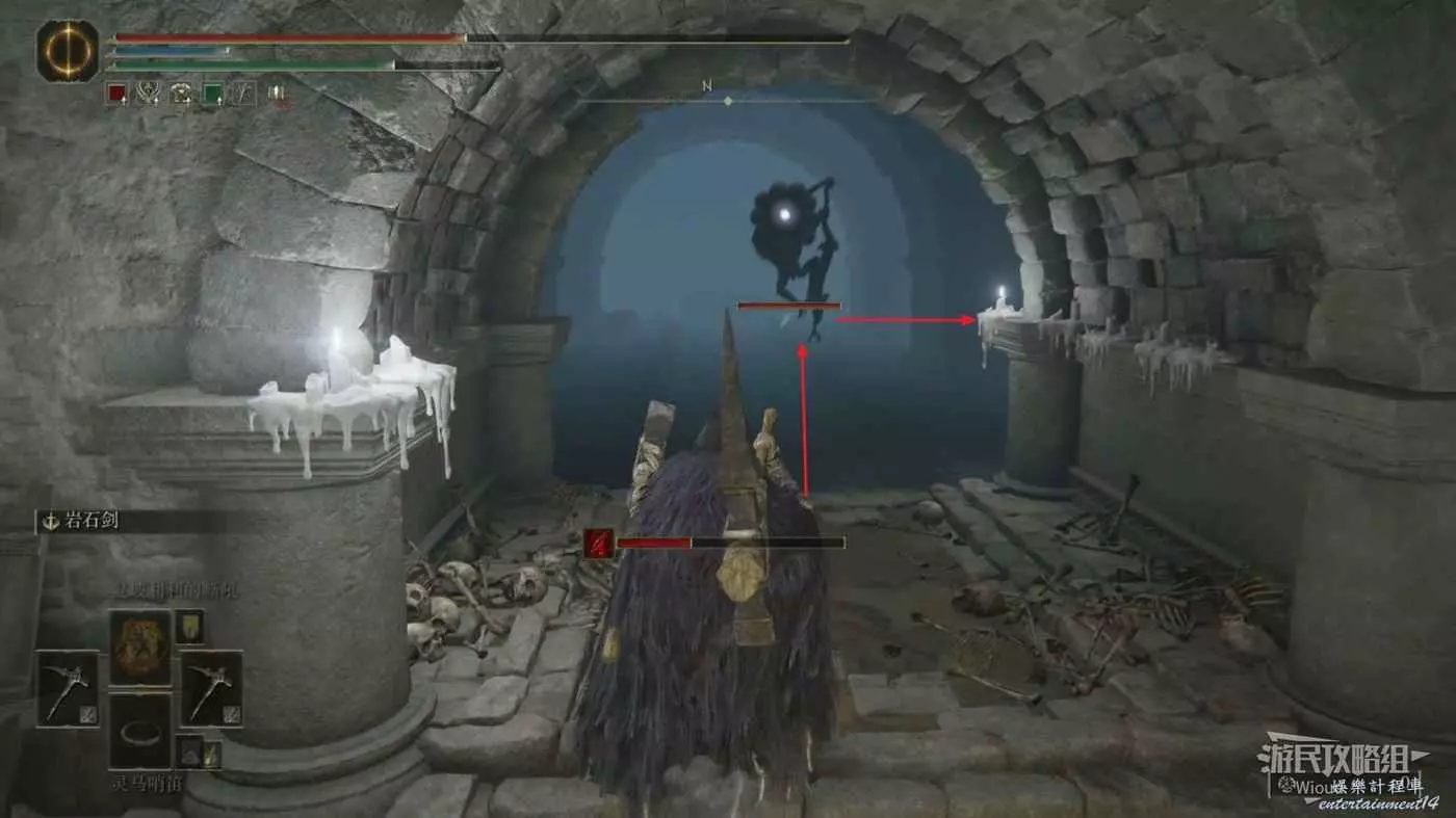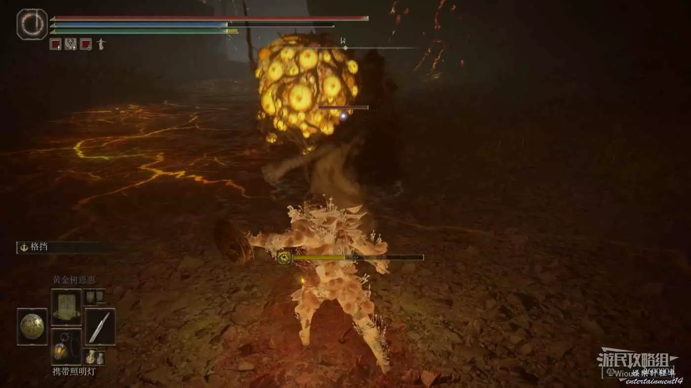 這個怪物正常攻擊是無法造成傷害的,因此我們需要左手裝備盾牌,在怪物即將攻擊我們時彈反它,使用處決傷害擊殺這個怪物。