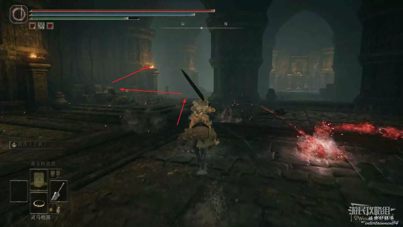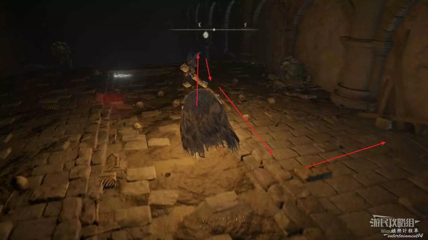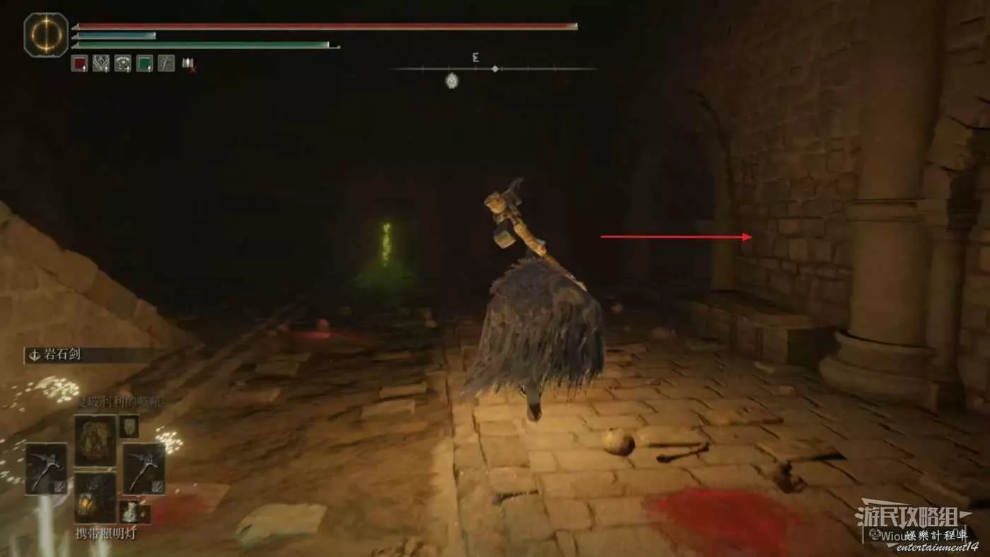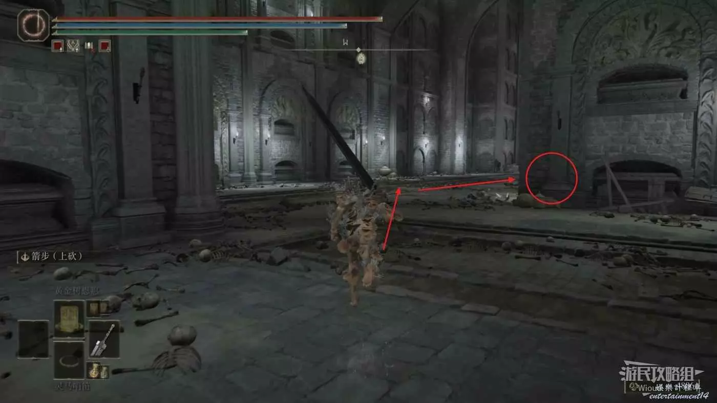 啟動地下墓地的賜福之後開始往前探索,擊敗眼前的怪物,往前方右側的通道走。