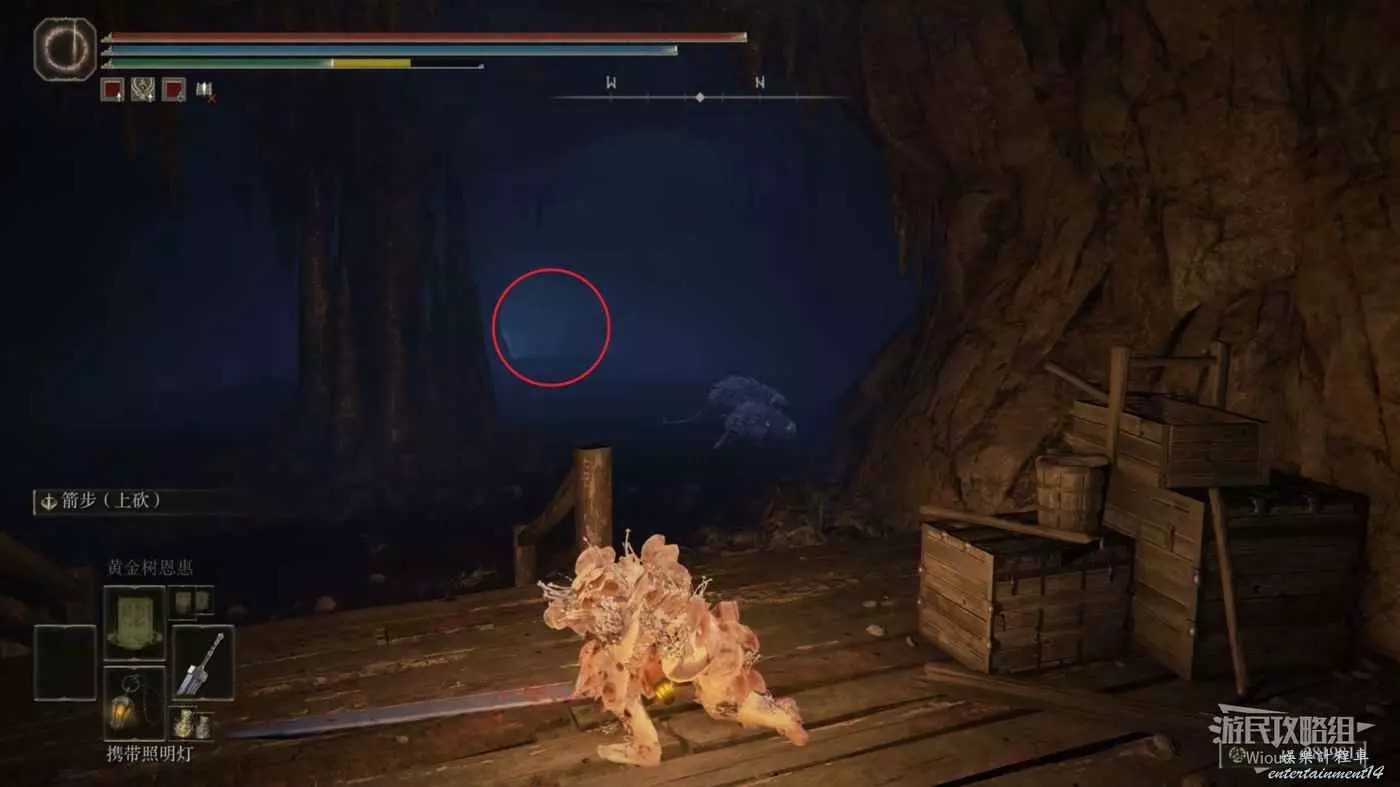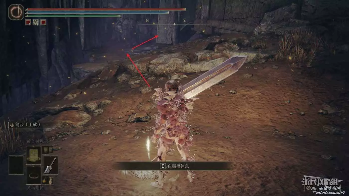 從這個懸崖跳下去,繼續往前走一段路解鎖第三個賜福【大洞的十字記號】。
