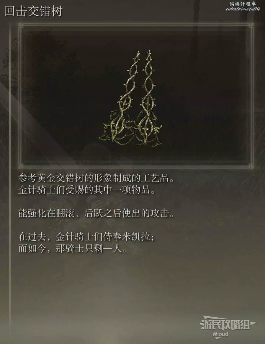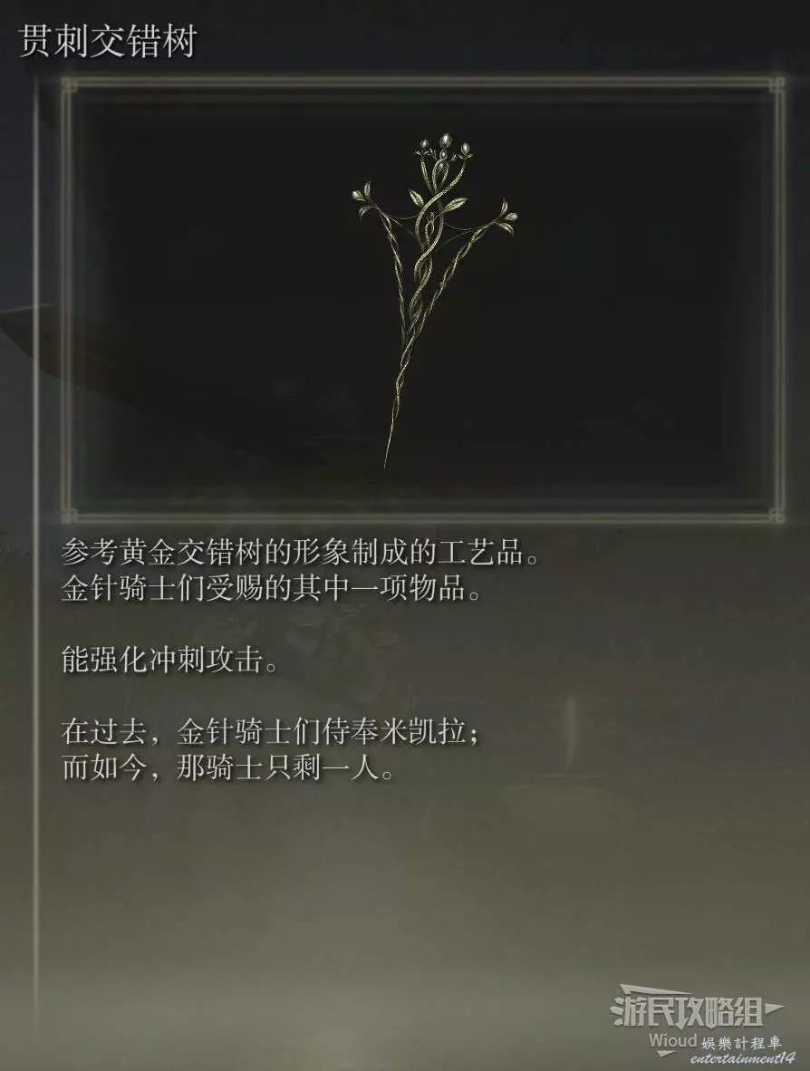 此護符需要幫助蕾妲擊敗角人獲得,貫刺交錯樹與回擊交錯樹這兩個護符都是通過相同方式獲得,且對進度有要求,因此建議連在一起看。