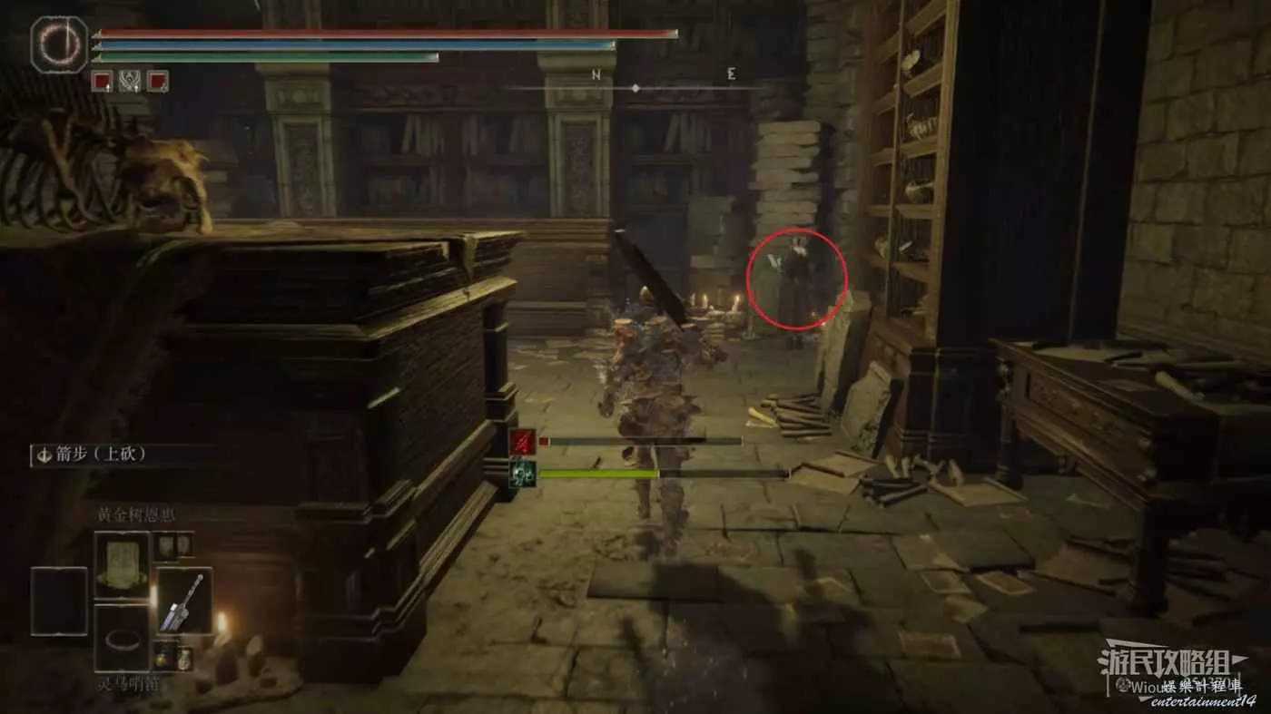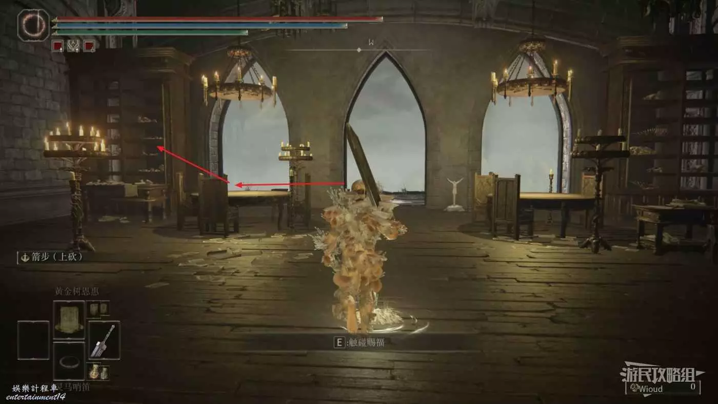 從一樓賜福開始往前走,進入一樓前方圖書櫃區域中間的房間,不要上二樓。
